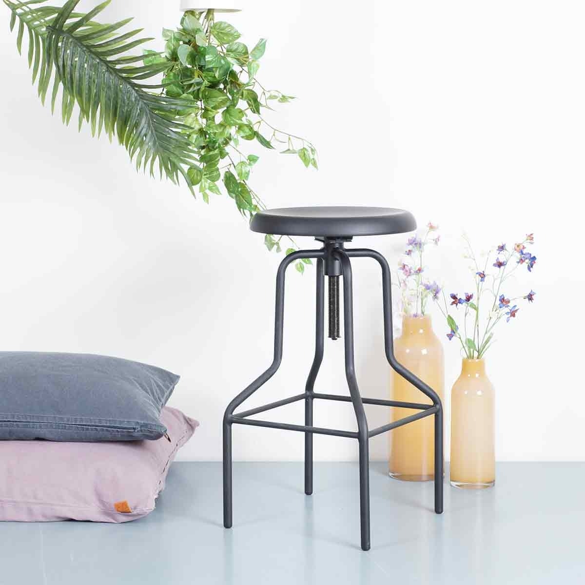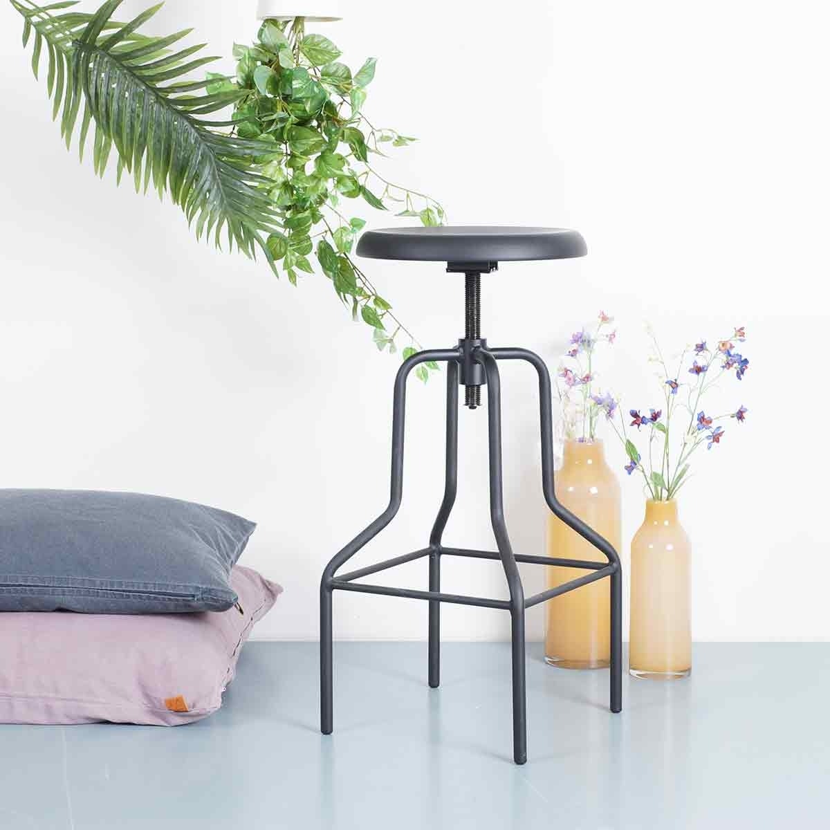 Dit biedt de mogelijkheid om de kruk te gebruiken in meerdere interieurstijlen. De zitting van de kruk is volledig draaibaar en in hoogte verstelbaar. De minimale hoogte is 65 cm en de maximale hoogte is 80 cm. Hierdoor is de kruk zowel te gebruiken aan een kookeiland als aan bar. Kortom, de perfecte kruk die op meerdere plaatsen te gebruiken is! Deze mat zwarte draaibare kruk van Legend past door zijn elegante design in iedere interieur. De kruk is volledig gemaakt van metaal en met de matzwarte afwerking krijgt de kruk een industrieel karakter. Door het gebogen metaal straalt de kruk elegantie uit. Bovendien is de kruk voorzien van rubberen doppen om je vloer te beschermen.