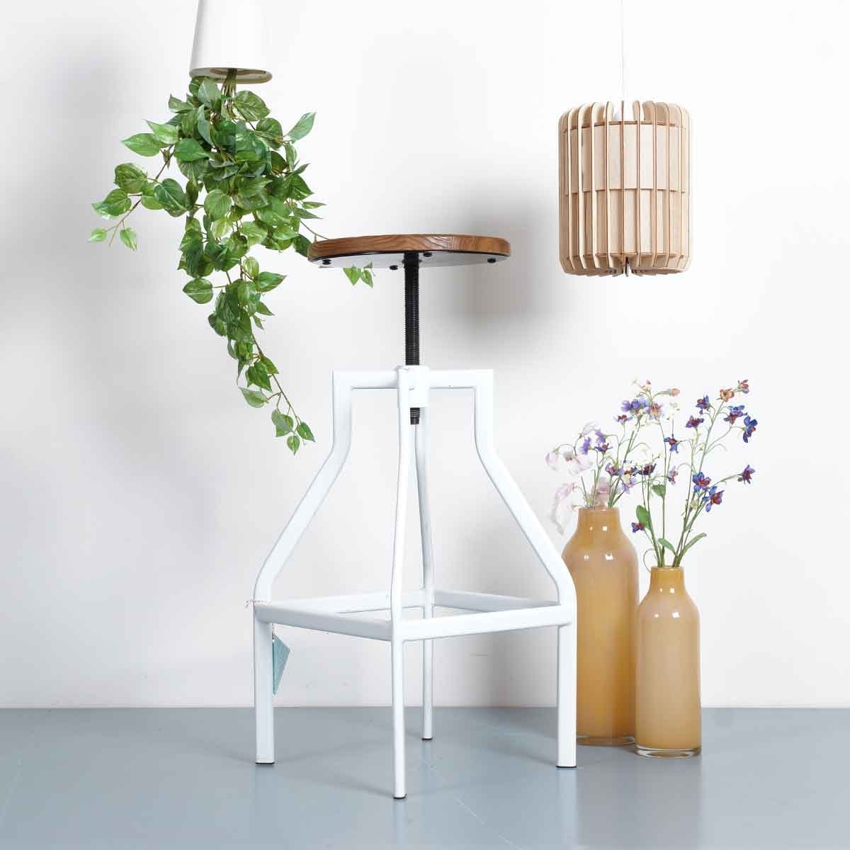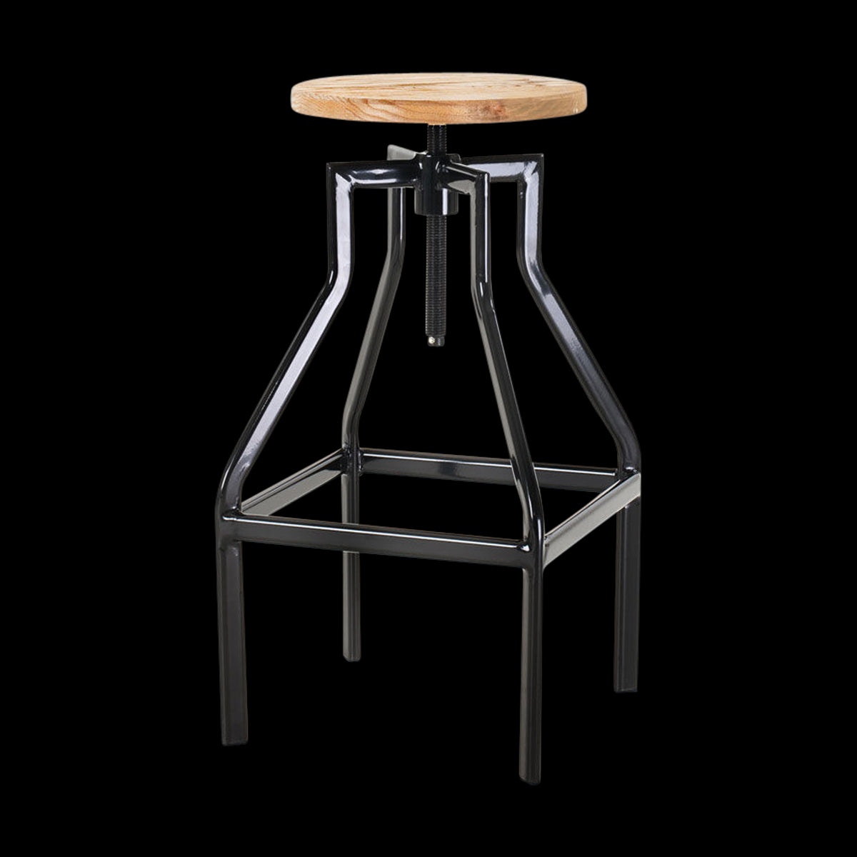 Een draaibaar krukje dat voorheen veel gebruikt werd in laboratoria, fabrieken en scholen, is nu getransformeerd tot een stijlvolle zitplaats voor thuis of in een restaurant of bar. Het ontwerp en materialen mix van staal en hout zorgen voor een stoere, industriële uitstraling. De zitting van de het krukje is volledig draaibaar en verstelbaar in hoogte van 66 cm tot 83 cm.