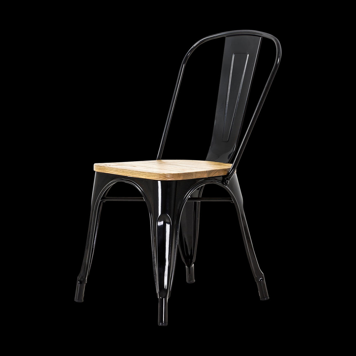 Een nieuwe uitvoering van een klassieker: dat is deze café stoel van het stoere merk Legend. Gebaseerd op de Tolix stoel van Xavier Pauchard, nu verkrijgbaar met een houten zitting. Hierdoor krijg je een bijzondere stoel die Industrieel design combineert met de natuurlijke uitstraling van hout. En daarmee wordt de stoel een echte eye-catcher. De zitting is afgewerkt met een lichte olie om het hout te beschermen.