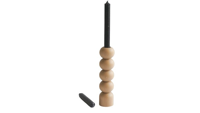 - Deze hoge kandelaar past met haar elegante hout gedraaide rondingen en matte kleur, goed in een modern interieur.