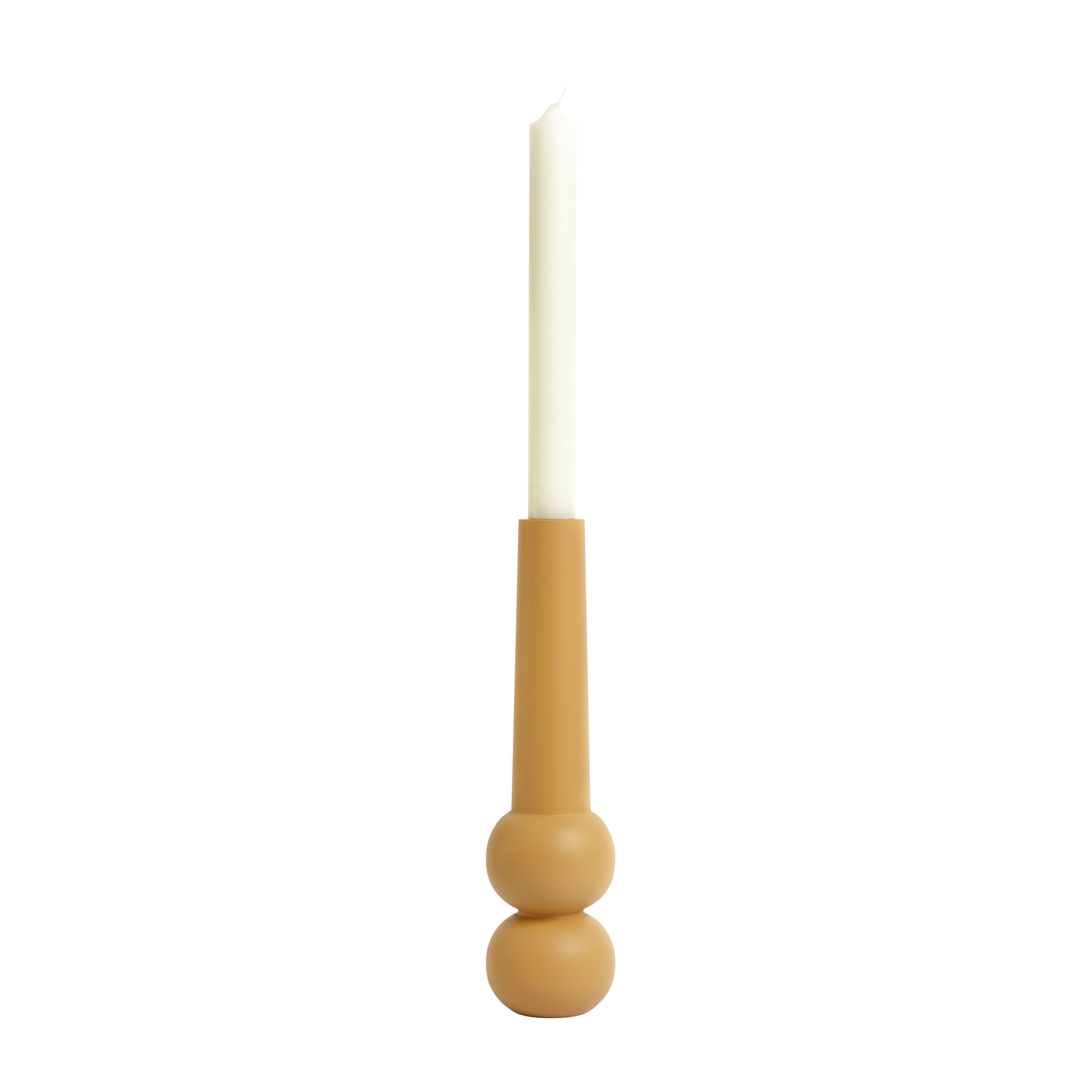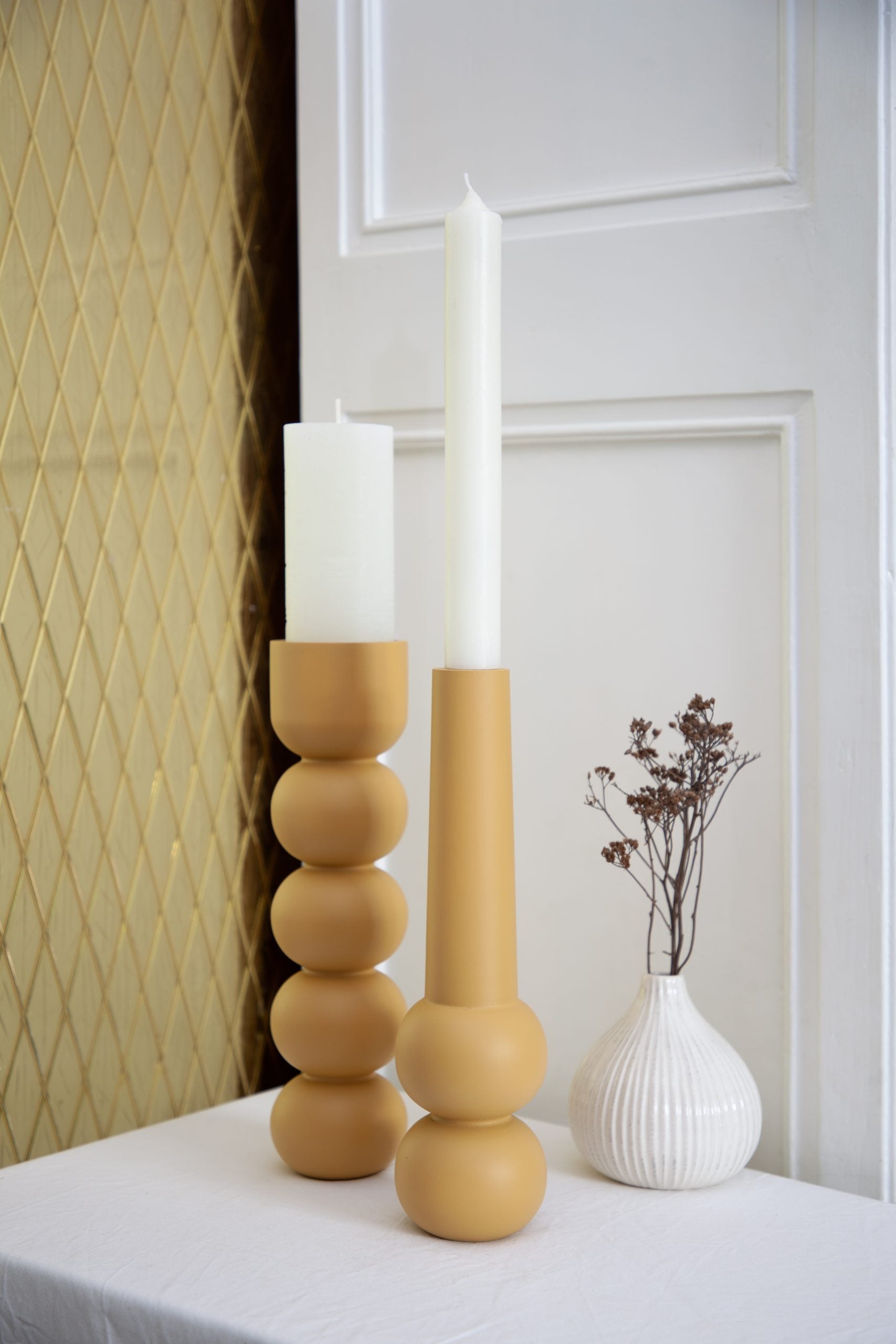 - Deze massief houten kandelaar past met haar elegante hout gedraaide vormen en matte kleur, goed in een modern interieur.