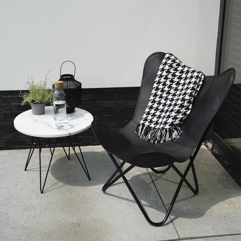 Deze opvallende zwarte vlinderstoel Buffalo van Lesli Living heeft een iconisch ontwerp waardoor hij een perfecte aanvulling op je woonkamer-, slaapkamer- of kantoorinrichting is. Deze stoel heeft geen extra verfraaiing nodig. Hij heeft een gecoat ijzeren frame met een zitting van geitenleer en combineert elegantie met een uitzonderlijk comfort. Verder is de stoel lichtgewicht en gemakkelijk mee te nemen. Met een draagvermogen van 100 kg kun je gaan zitten, relaxen en van je dag genieten!