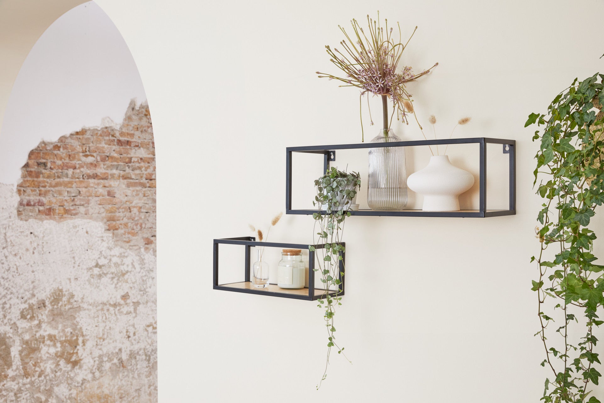 - De zwevende planken zijn verkrijgbaar in een volledig zwarte variant en een zwart en naturel variant