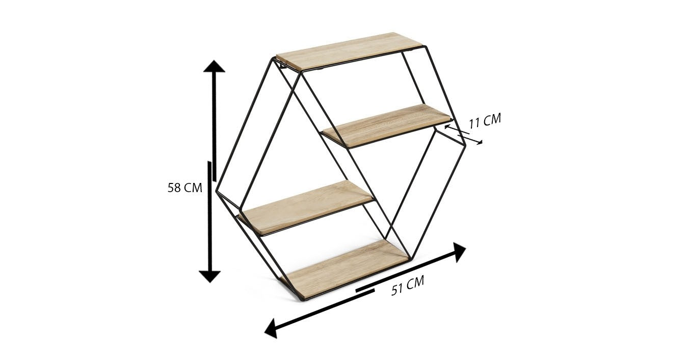 - De afmetingen van dit opbergrek zijn: 58 x 51 x 11 cm.