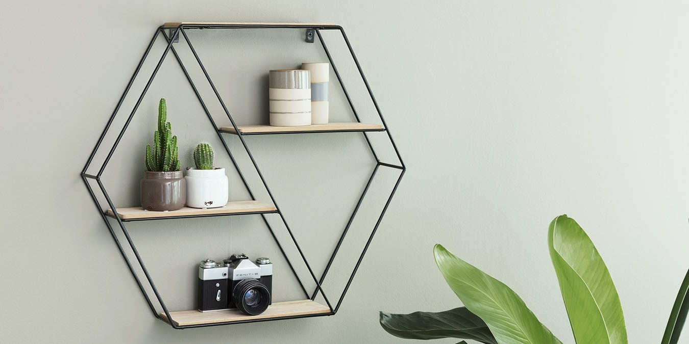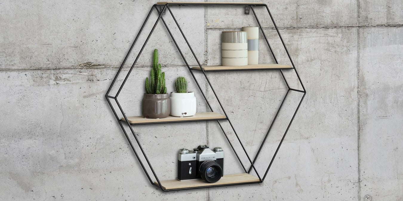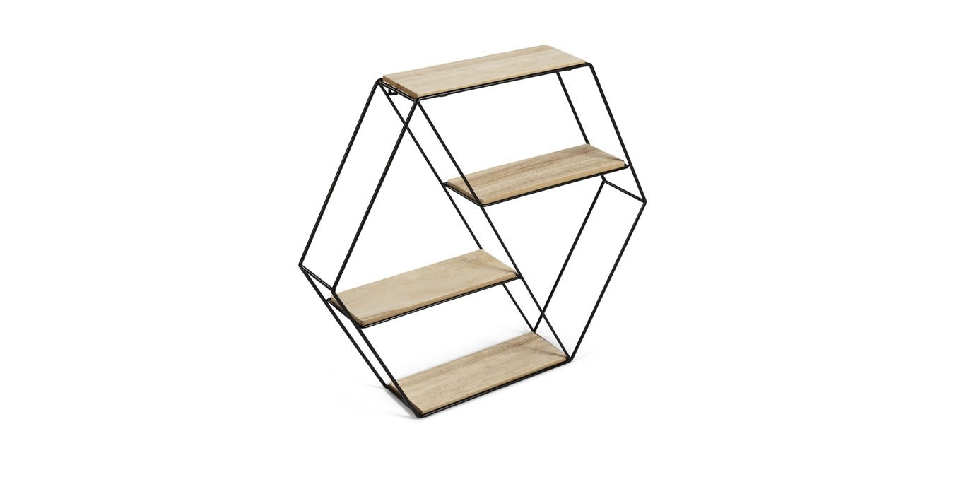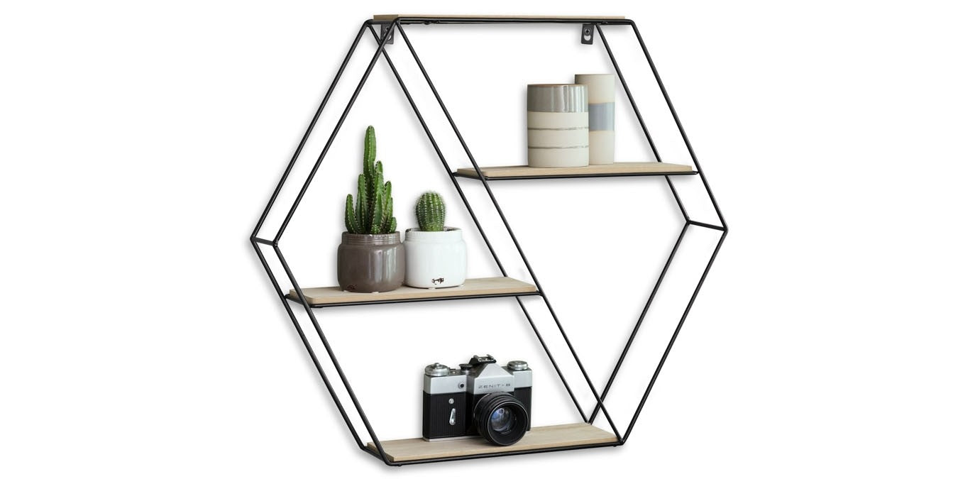 - Dit stevige wandrek is gemaakt van metaal en MDF.