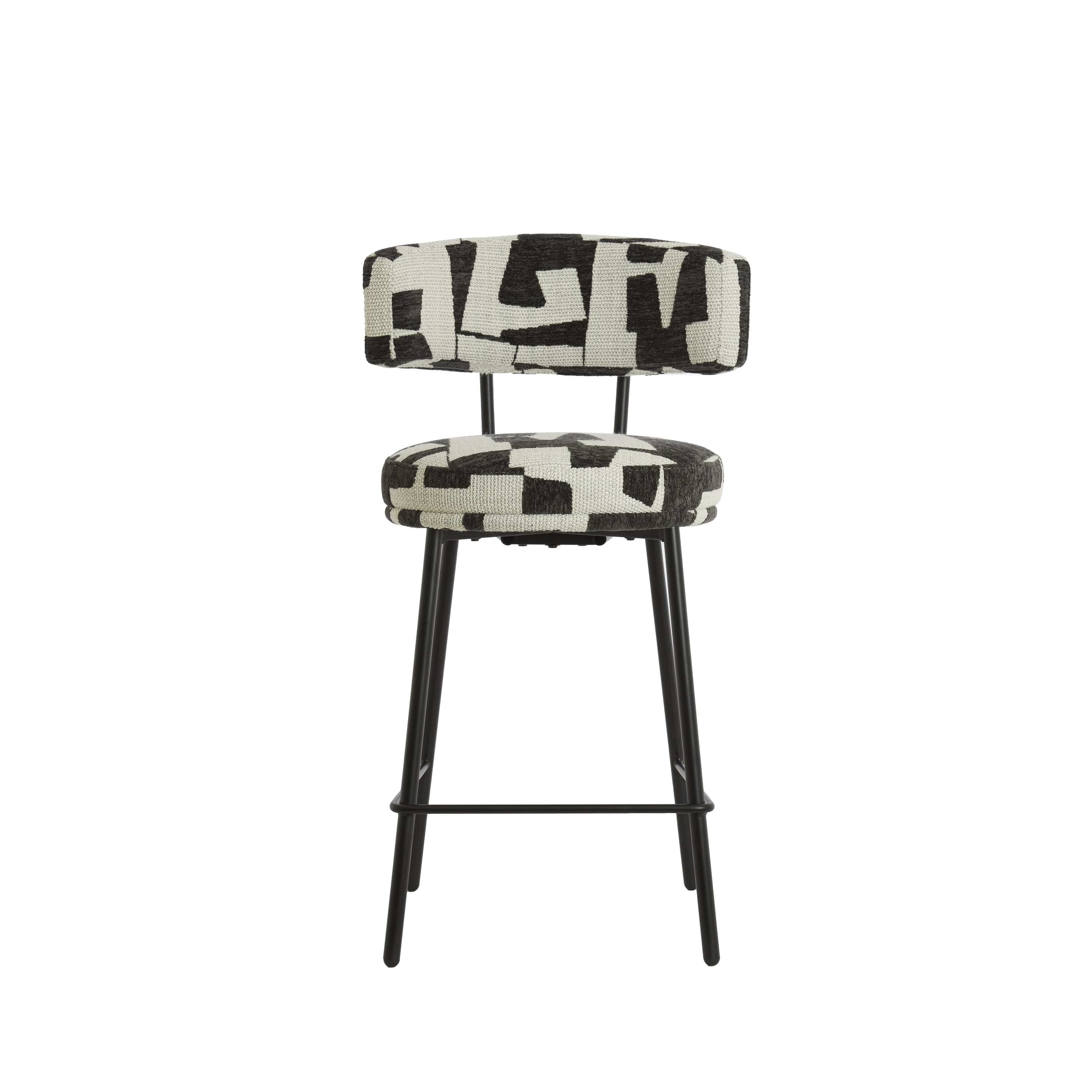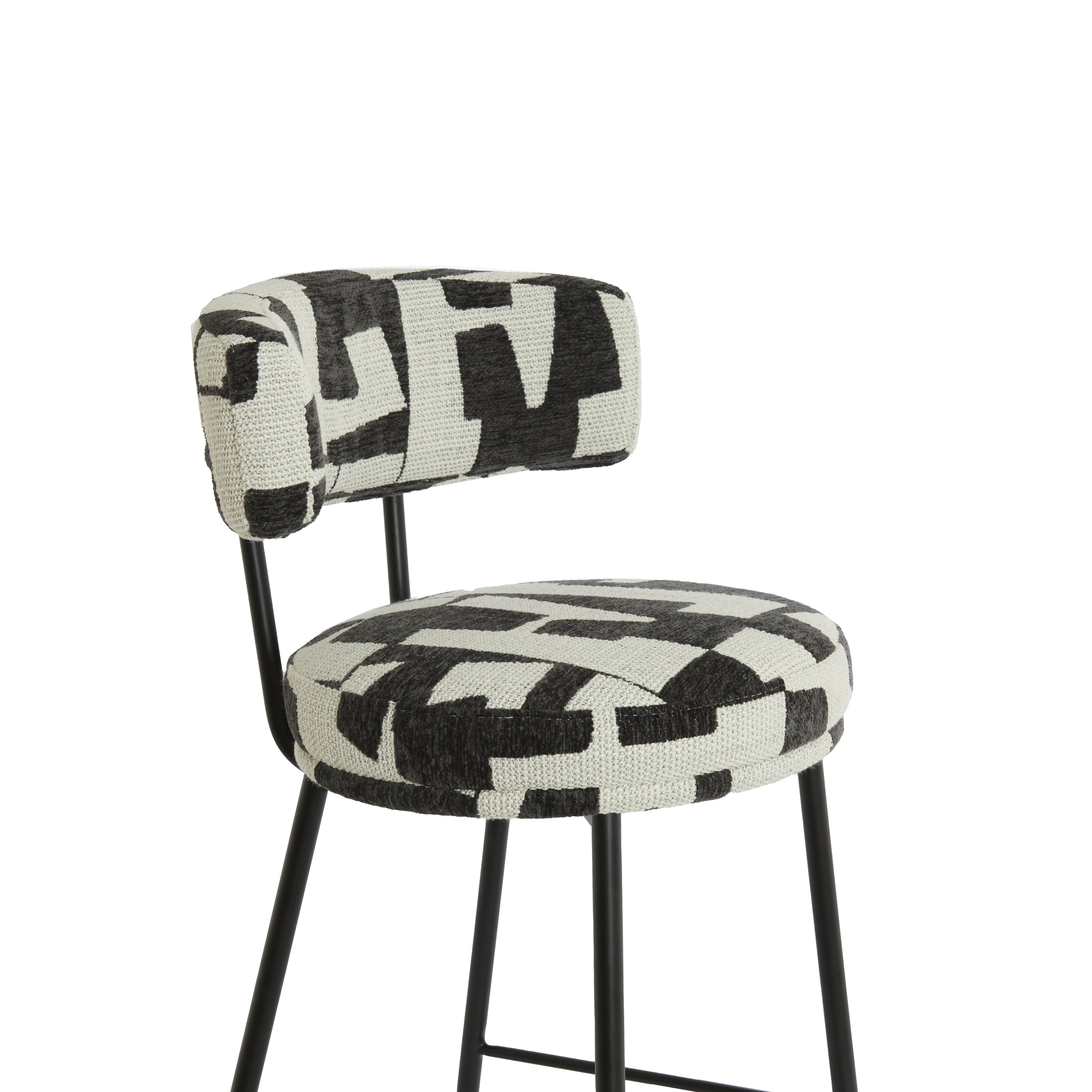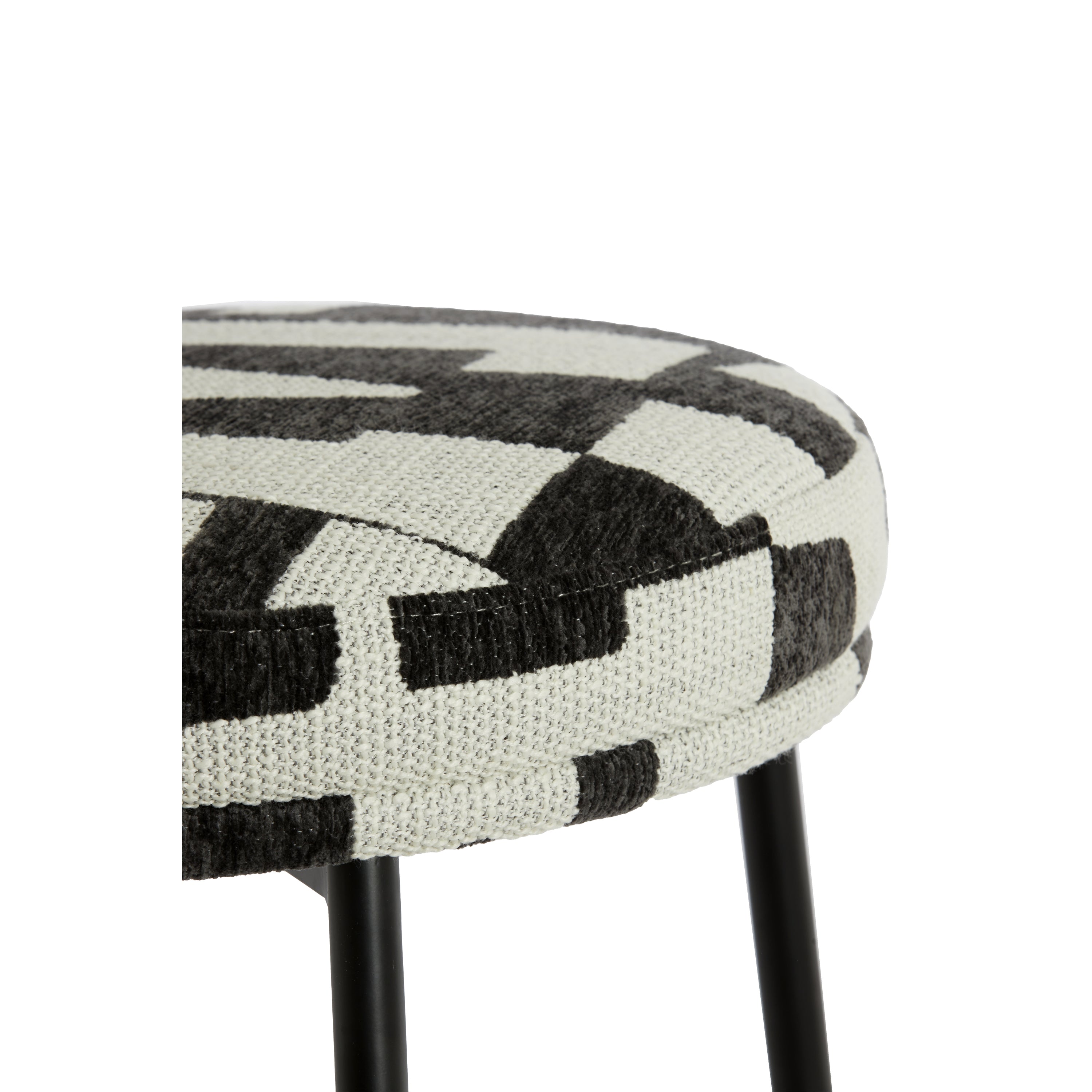 De crème bekleding met zwarte blokprint en het mat zwarte frame geven de HARVIE barkruk een stijlvolle retrolook die karakter toevoegt aan je keuken of barhoek. Een echte eyecatcher in je interieur.