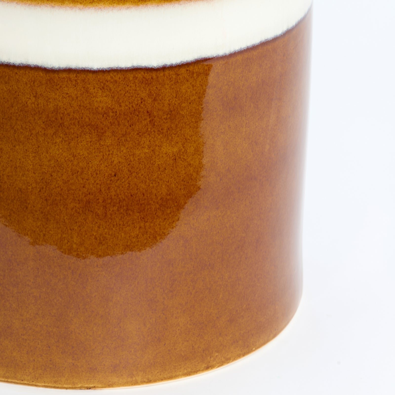 - Rond bijzettafeltje van glanzend keramiek in cognac met wit
