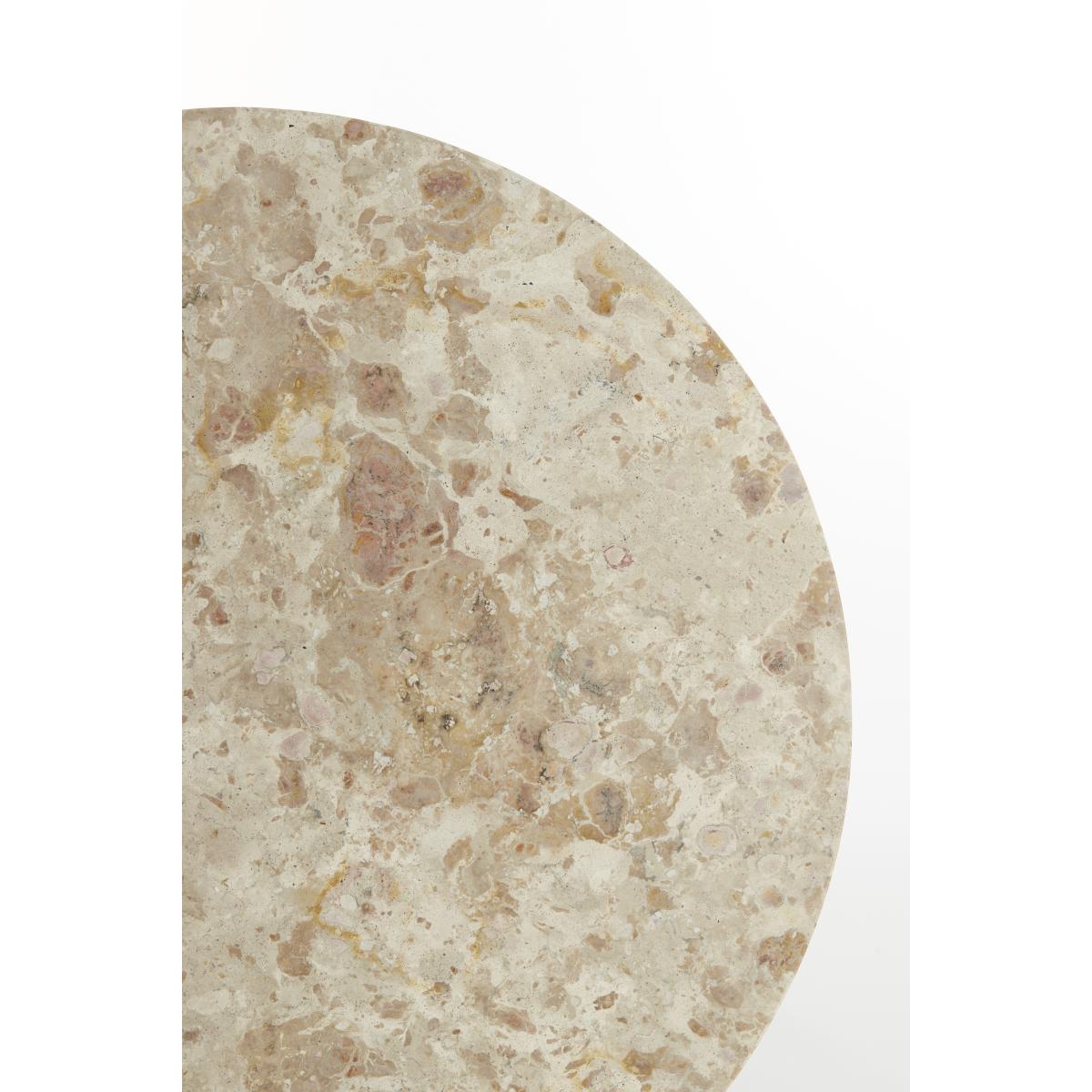 Het marmeren blad van de ZECA bijzettafel heeft een luxe uitstraling dankzij de zachte taupe tinten die het een verfijnde look geven. Marmer staat bekend om zijn tijdloze schoonheid en robuustheid, wat deze tafel zowel een visueel hoogtepunt maakt als een praktisch meubelstuk. Het marmeren oppervlak is niet alleen stijlvol, maar ook gemakkelijk te onderhouden, waardoor de ZECA bijzettafel zowel mooi als functioneel is.