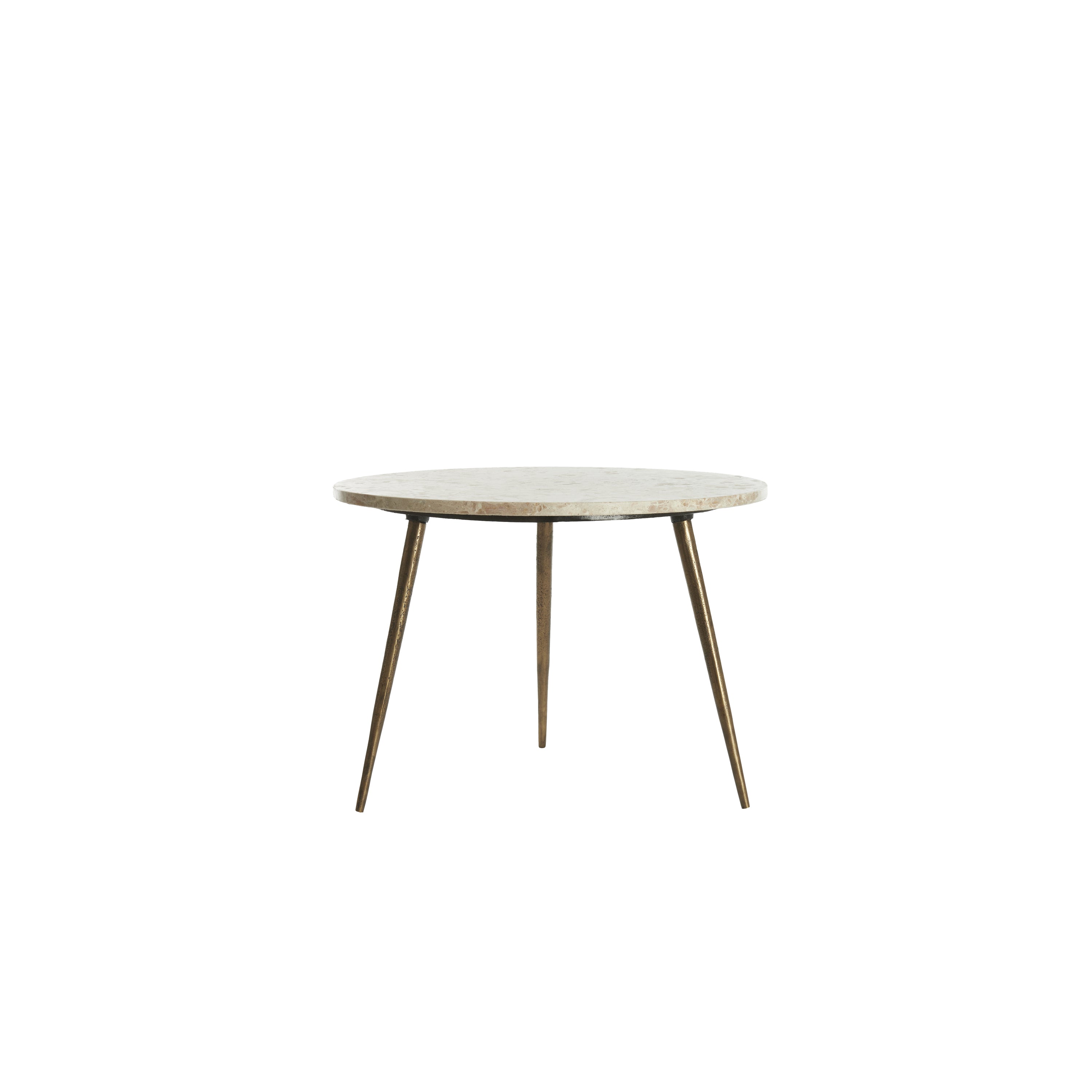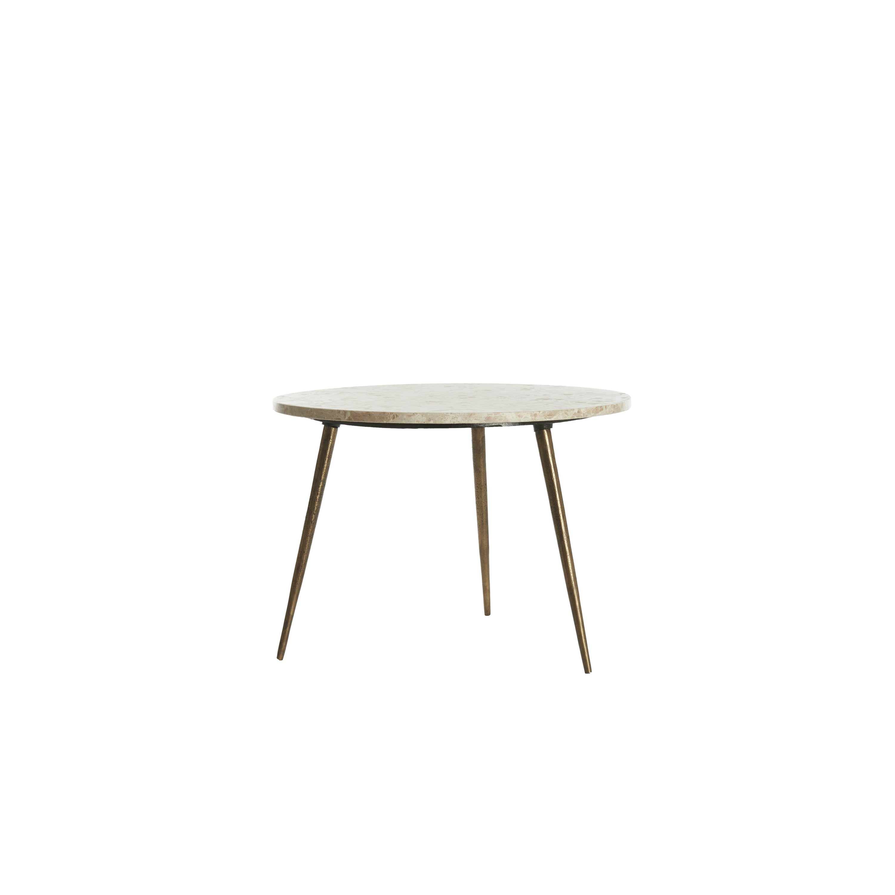 De Light&Living Bijzettafel Ø59x41 cm ZECA in taupe marmer en antiek brons is een verfijnde en elegante toevoeging aan je interieur. Het luxueuze marmeren blad in taupe tinten gecombineerd met de antiek bronzen poten zorgt voor een prachtige balans tussen stijl en functionaliteit. Deze bijzettafel past perfect in een modern of klassiek interieur en biedt een chique uitstraling in je woonkamer, hal of slaapkamer.