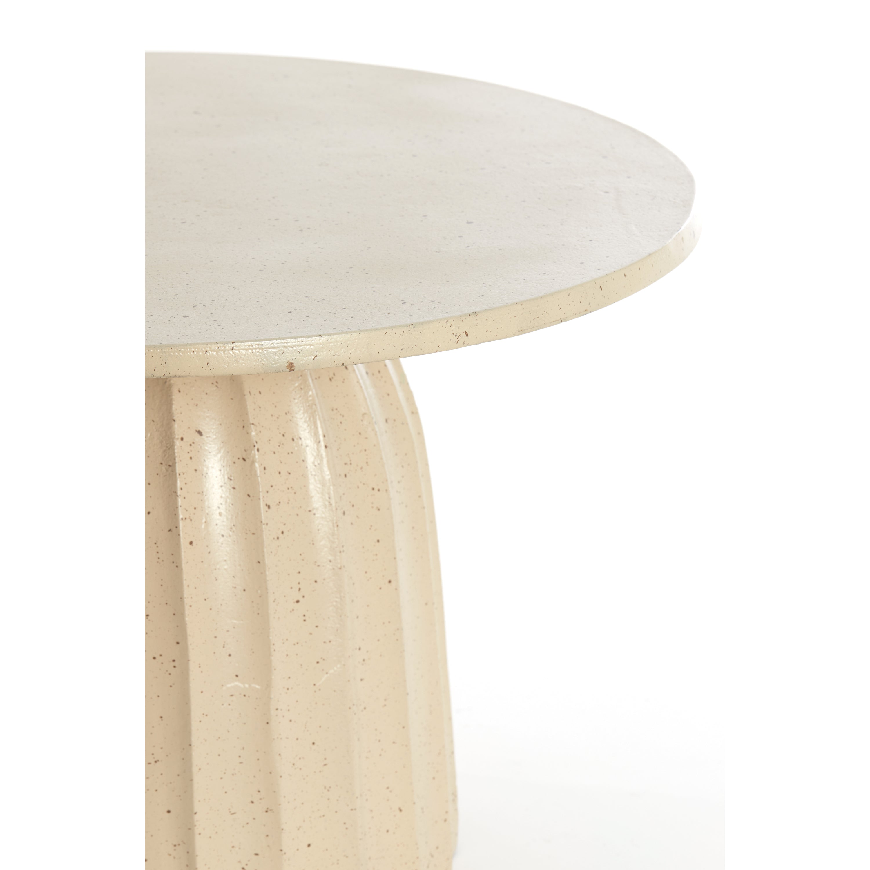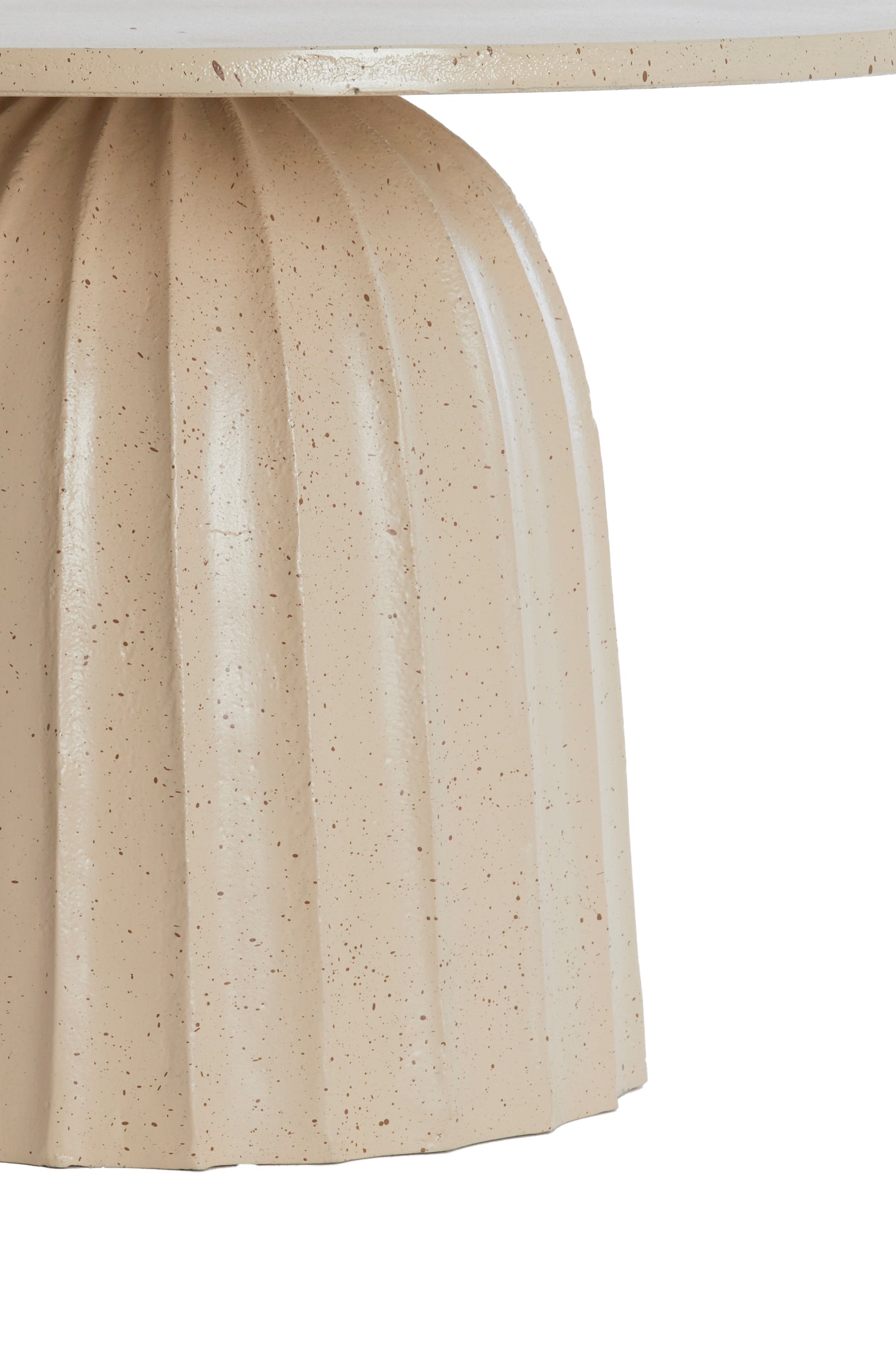 De VEGLIA bijzettafel onderscheidt zich door zijn unieke kleurenschema. De matzandkleurige basis en het lichtbruin gespikkelde tafelblad vormen samen een stijlvolle combinatie die een warme en uitnodigende sfeer creëert. Dit maakt de tafel niet alleen functioneel, maar ook een opvallend decoratief element in je interieur.