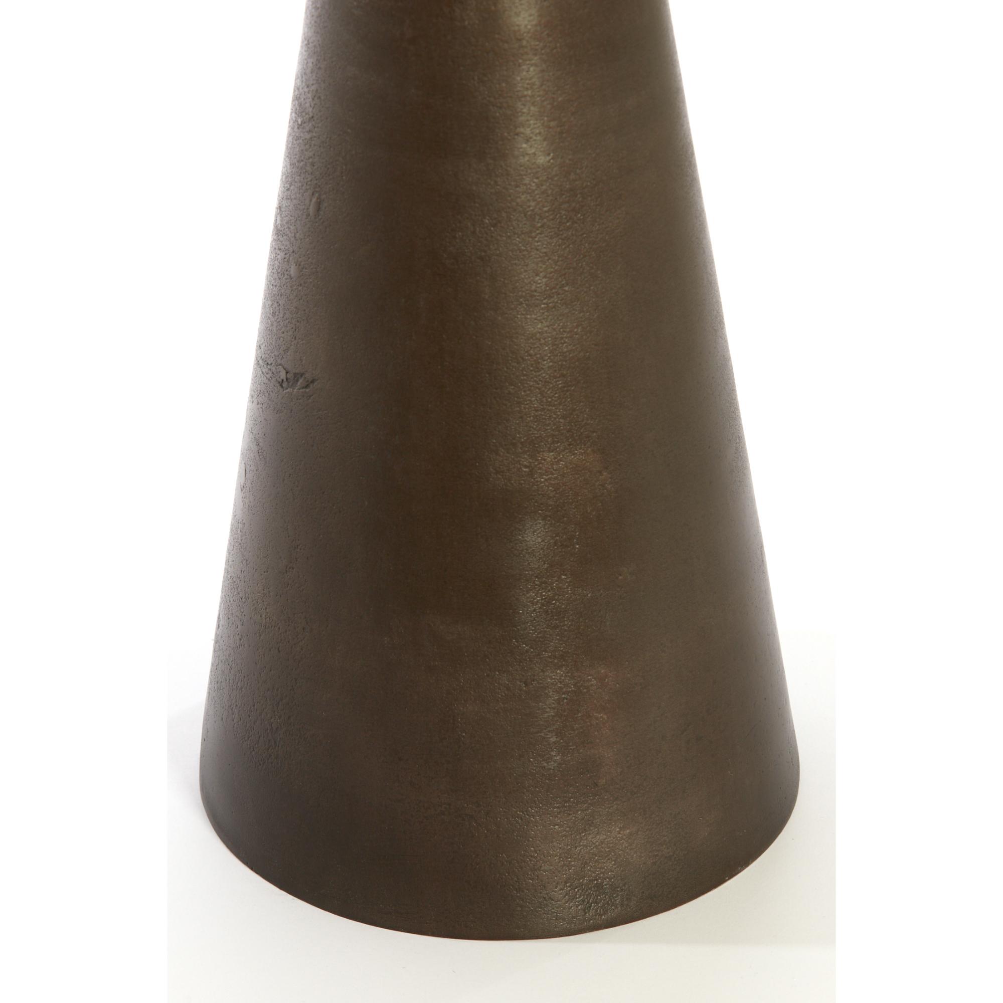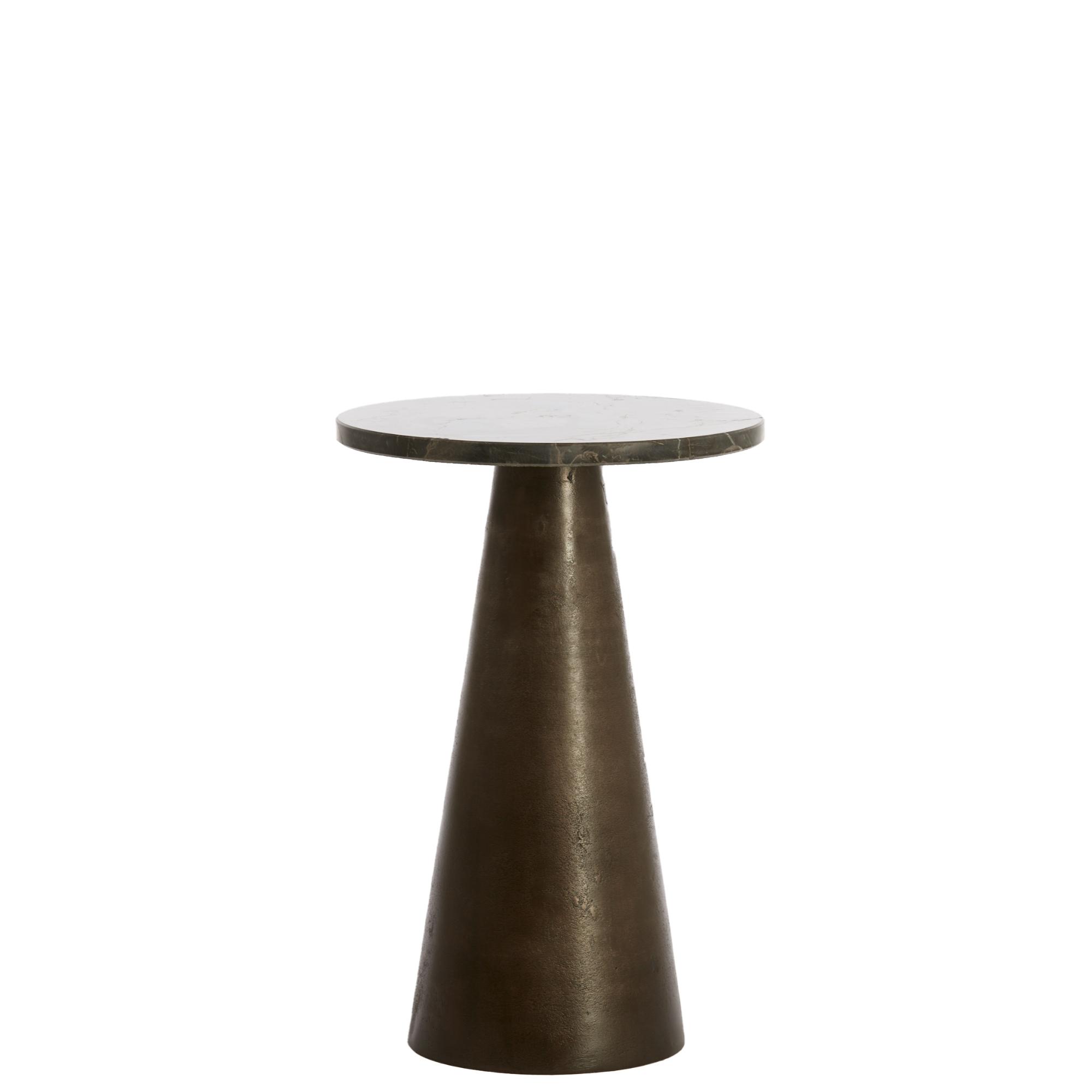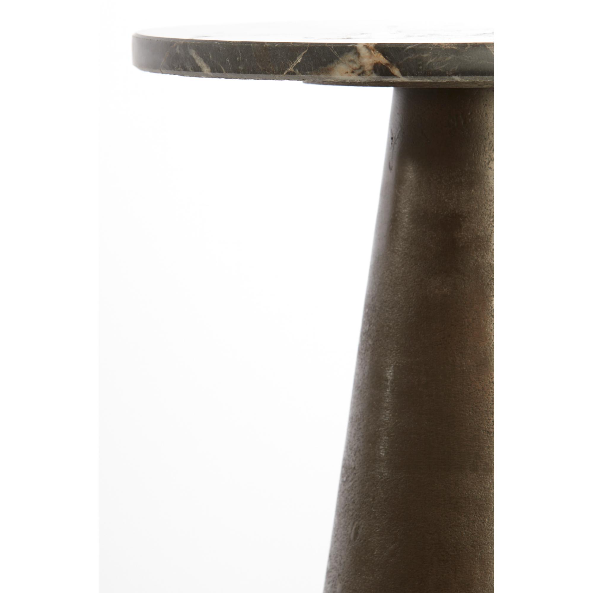 - Donkerbruin ijzeren voet met een bruin marmeren blad.