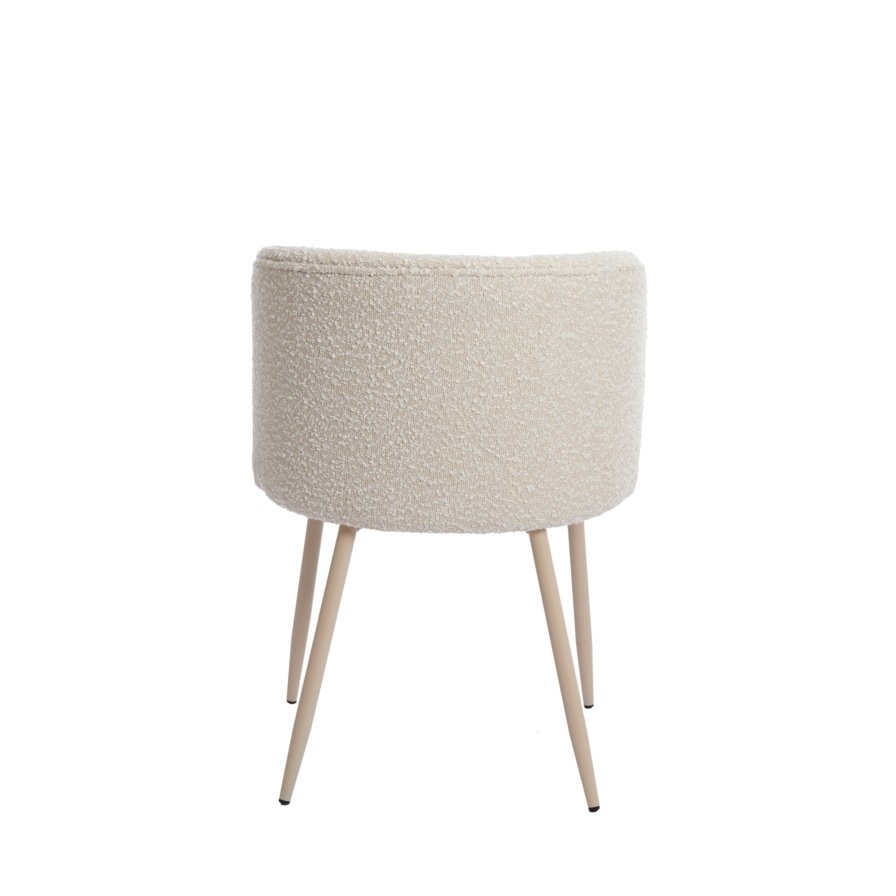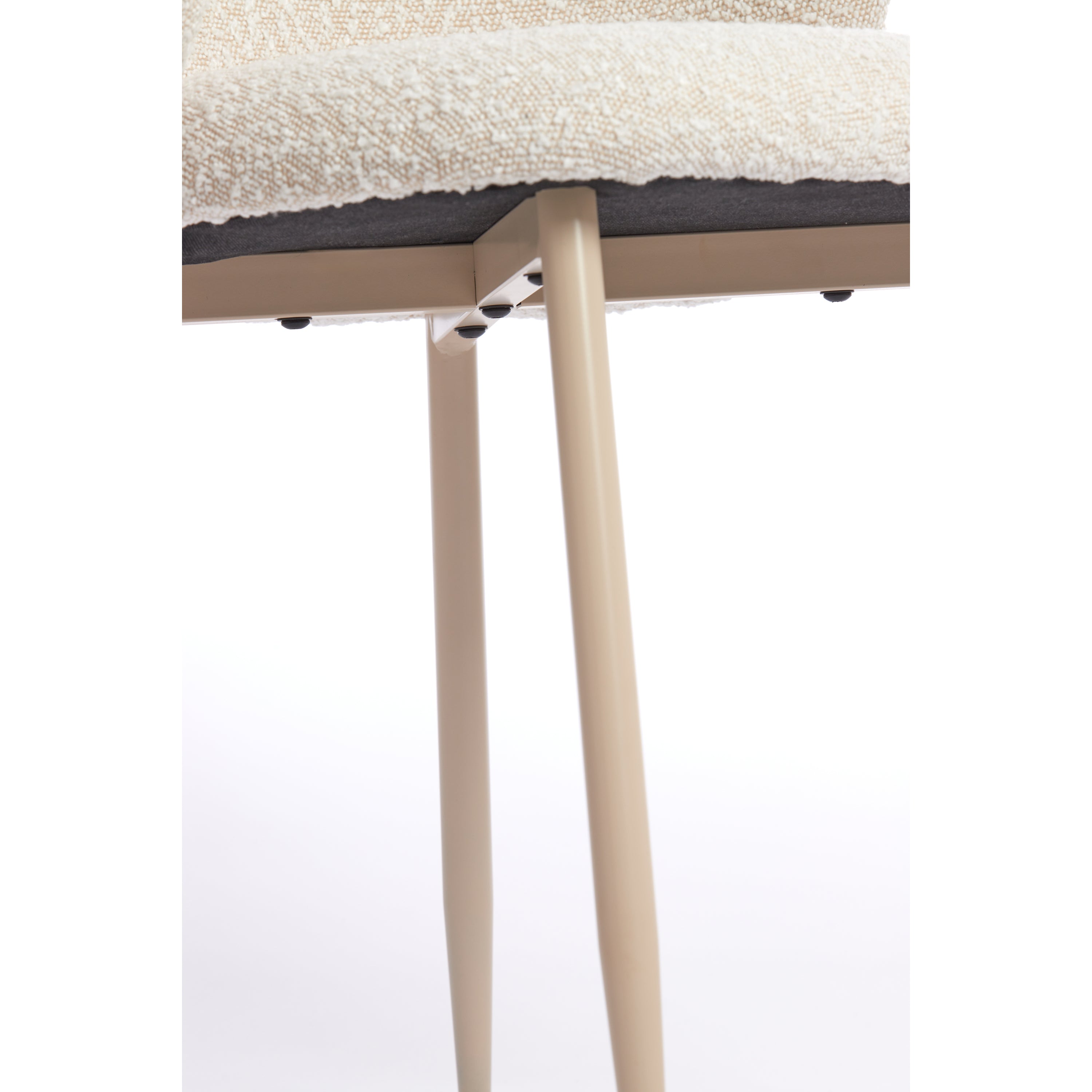 De ELYNA eetkamerstoel heeft een elegant en tijdloos design dat moeiteloos past bij verschillende eettafelstijlen. De crèmekleurige bekleding en het subtiele ontwerp voegen een vleugje verfijning toe aan elke eetruimte, of het nu modern, klassiek of landelijk is.