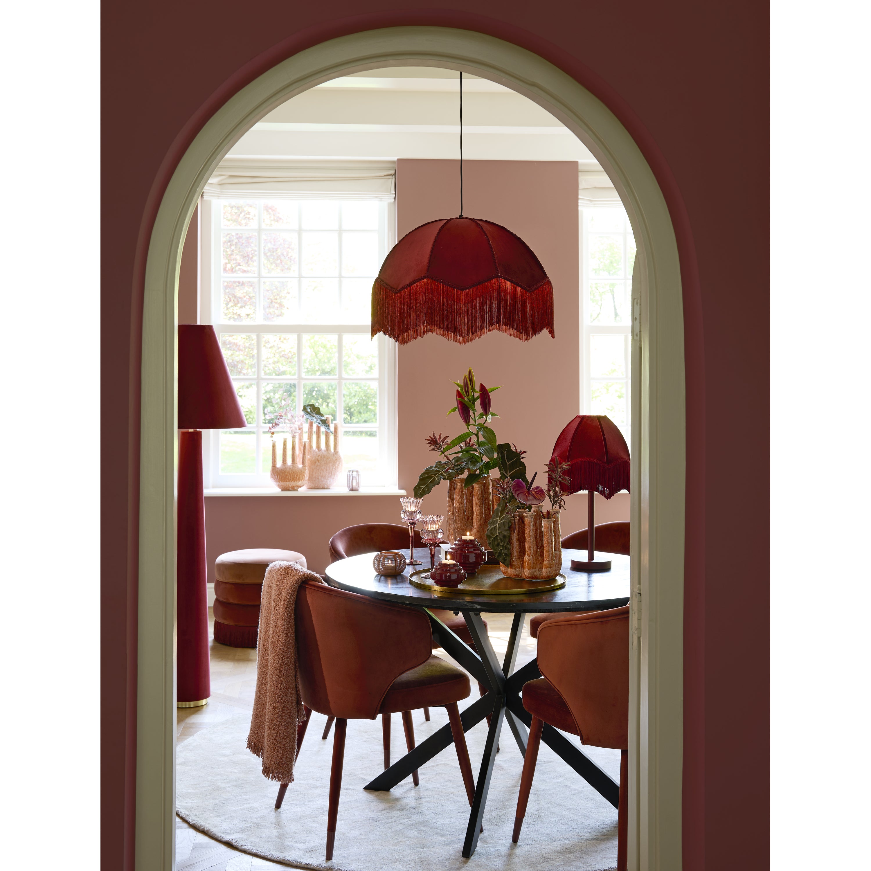 De Eetkamerstoel KOSAKA heeft een tijdloos en eigentijds ontwerp dat moeiteloos past bij diverse interieurstijlen. De diepe bordeauxrode kleur voegt een warme en luxe uitstraling toe aan je eetkamer, terwijl de slanke vormgeving een vleugje elegantie brengt.