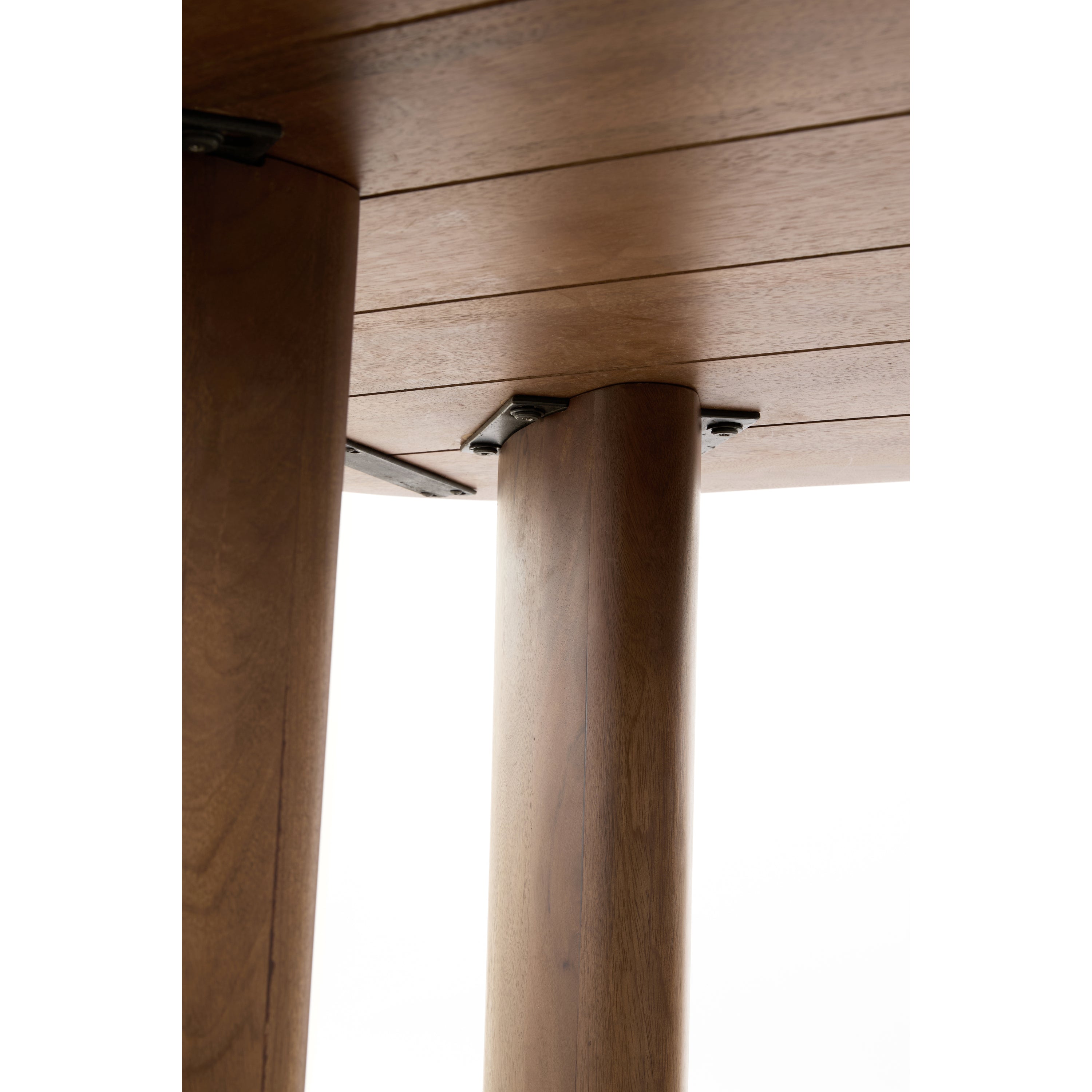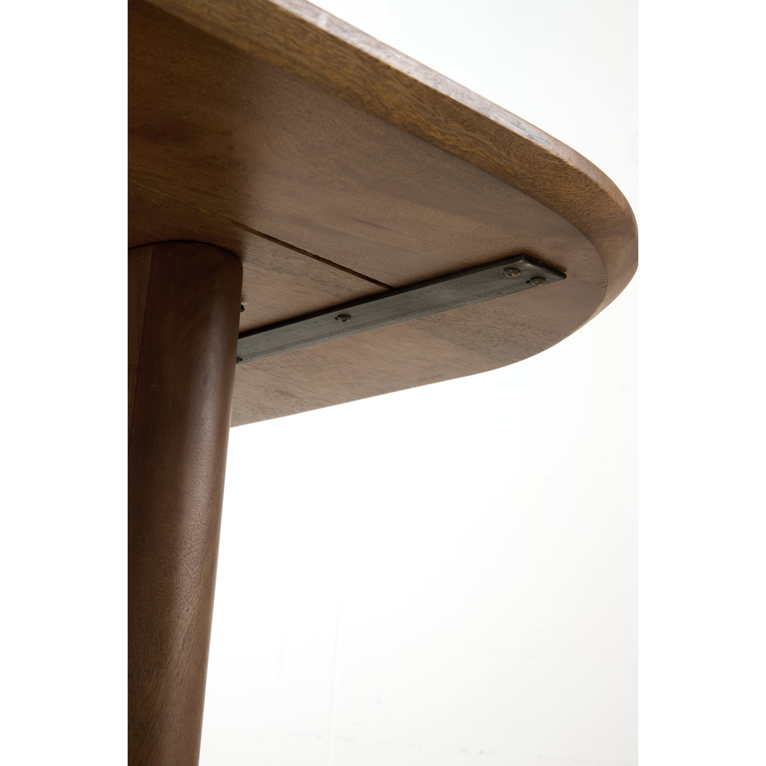 De eettafel is vervaardigd van hoogwaardig donkerbruin hout, wat niet alleen een elegante uitstraling geeft, maar ook bijdraagt aan de duurzaamheid van het meubelstuk. Het hout is goed bestand tegen dagelijks gebruik en behoudt zijn mooie uitstraling door de jaren heen.