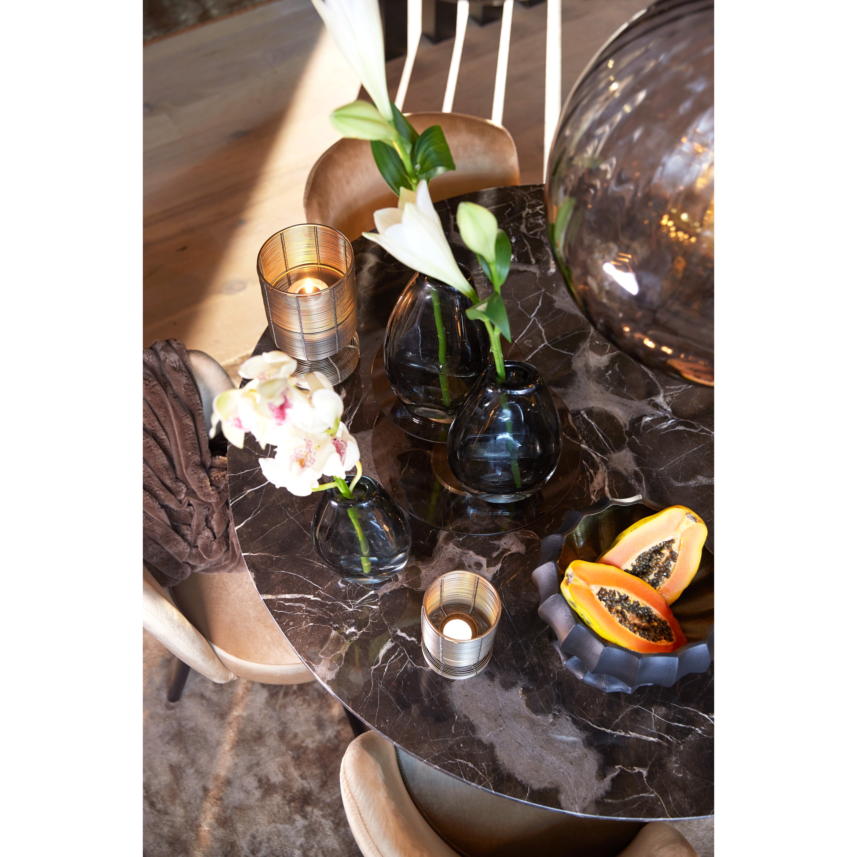 Met zijn tijdloze design past de YNEZ eettafel perfect bij diverse interieurstijlen. Of je nu een modern, klassiek, of industrieel interieur hebt, deze tafel voegt altijd een vleugje elegantie toe aan je eetkamer. Het donker bruine marmeren blad zorgt voor een chique uitstraling, terwijl de compacte afmetingen van Ø100x78 cm ervoor zorgen dat de tafel perfect past in kleinere eetkamers.