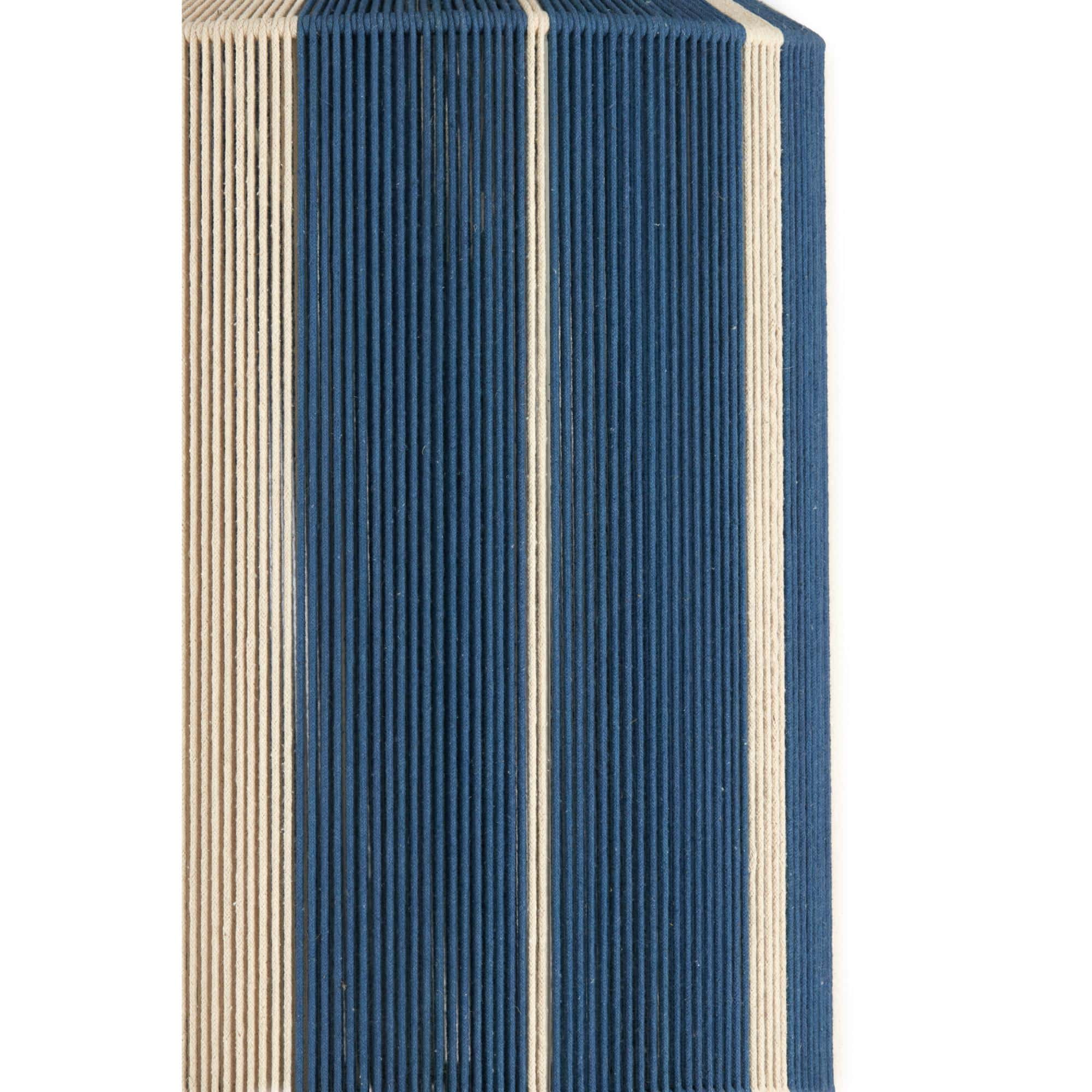 - Wit met blauwe lampenkap, gemaakt van textiel, voor diffuus sfeervol licht.