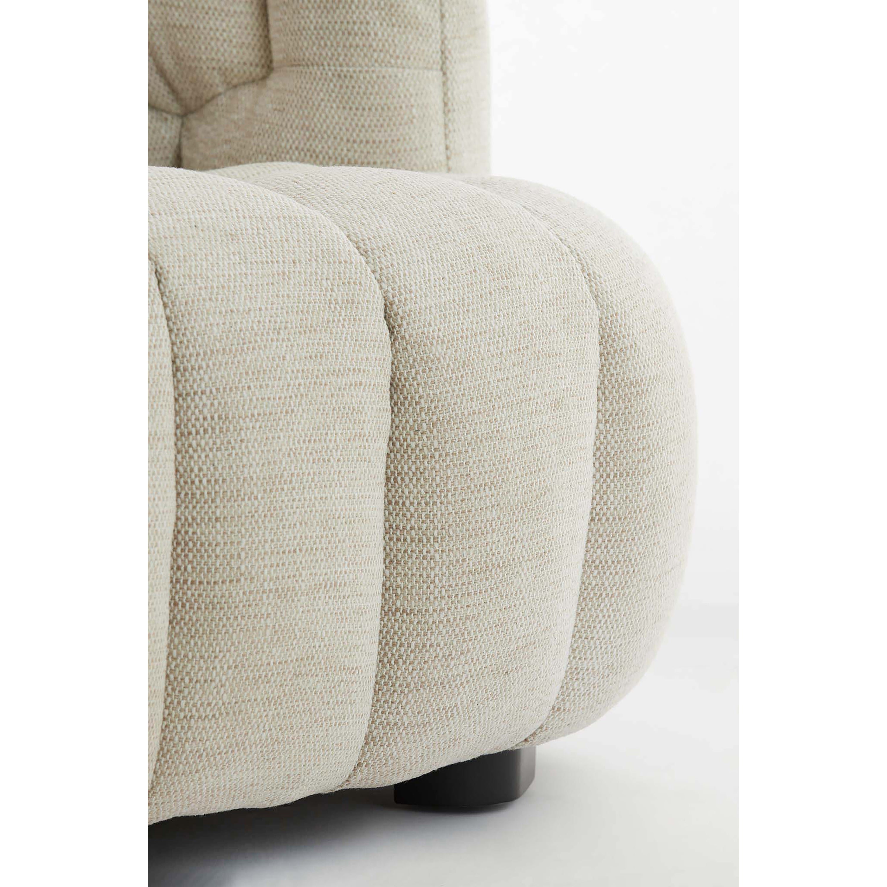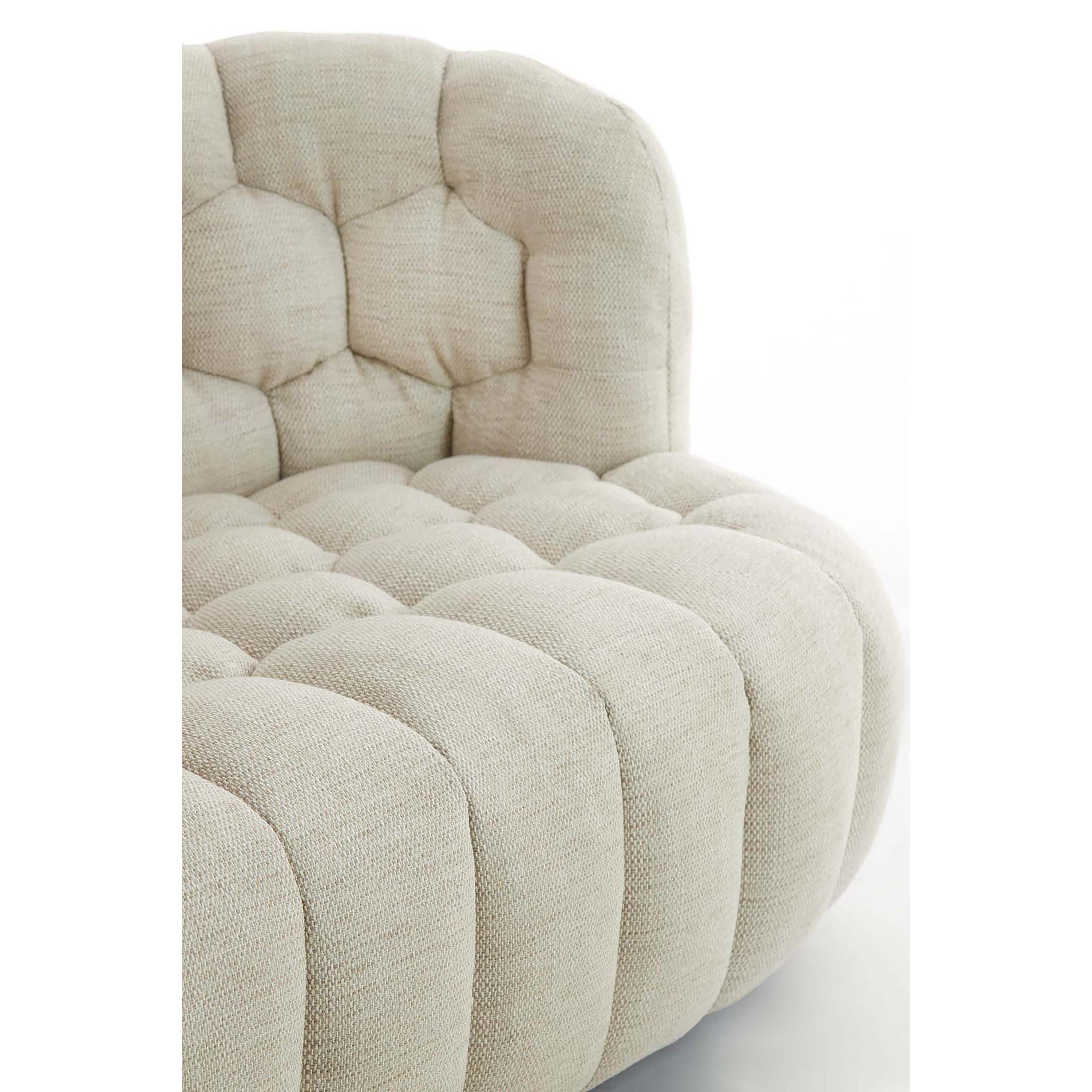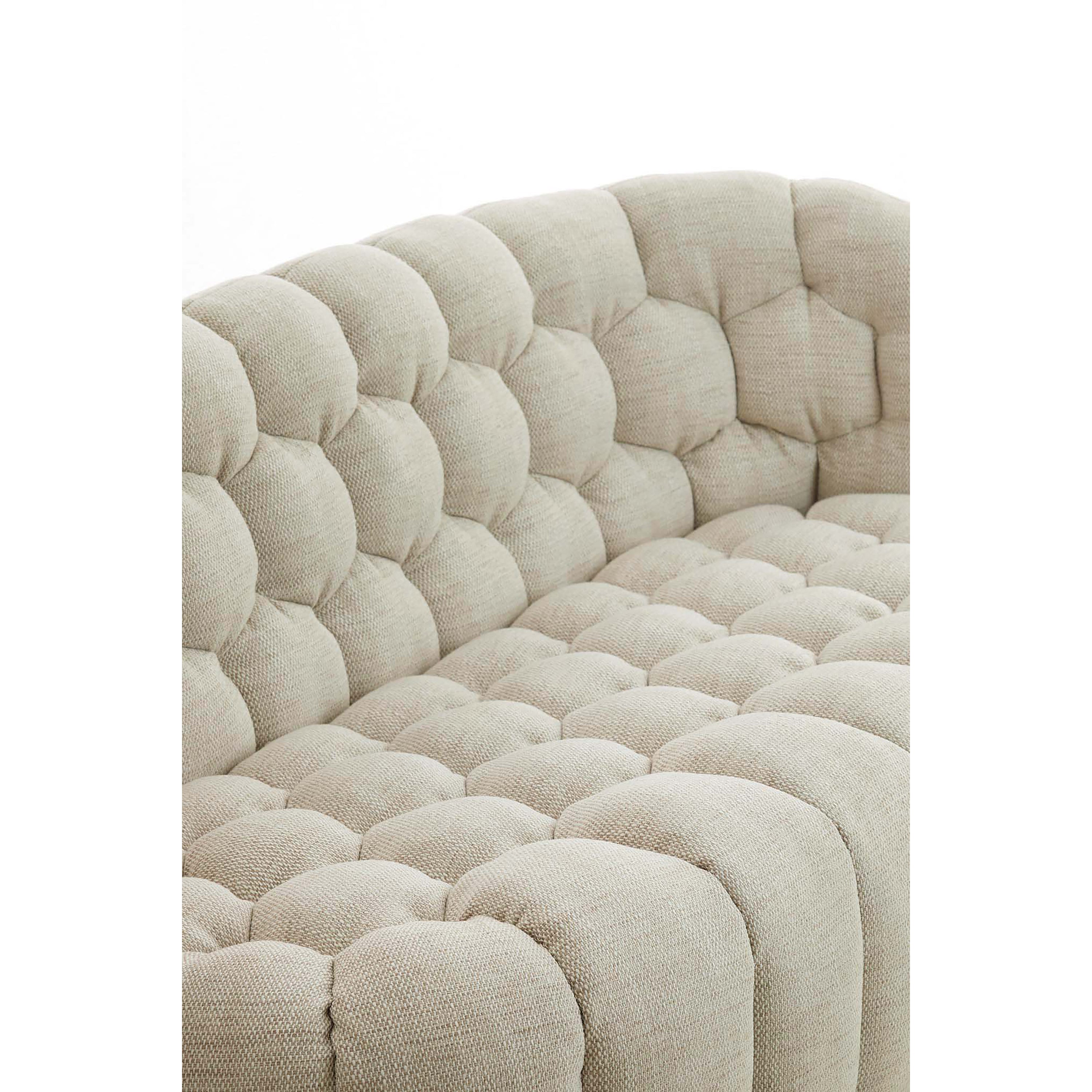 De stof van de AMARA bank is niet alleen stijlvol, maar ook praktisch. De crème stof is gemakkelijk schoon te maken en onderhoudsvriendelijk, wat het perfect maakt voor dagelijks gebruik. Dit zorgt ervoor dat de bank er altijd fris uit blijft zien, zelfs in drukbezochte huishoudens.