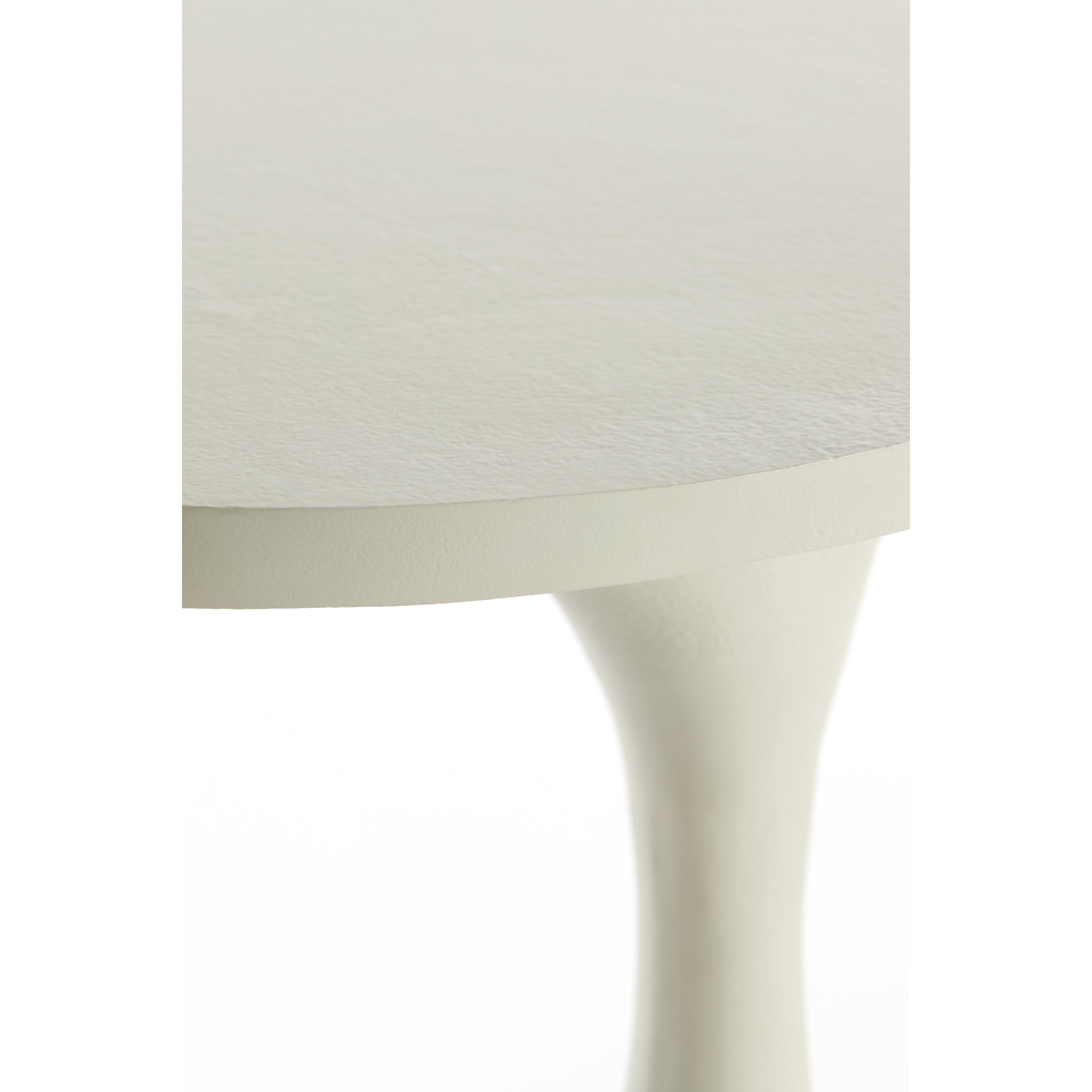De bijzettafel is vervaardigd van hoogwaardige materialen, waardoor hij niet alleen mooi is om naar te kijken, maar ook duurzaam en stevig in gebruik. Het stevige frame en het matte crèmekleurige oppervlak zorgen ervoor dat deze bijzettafel lang meegaat en bestand is tegen dagelijks gebruik.