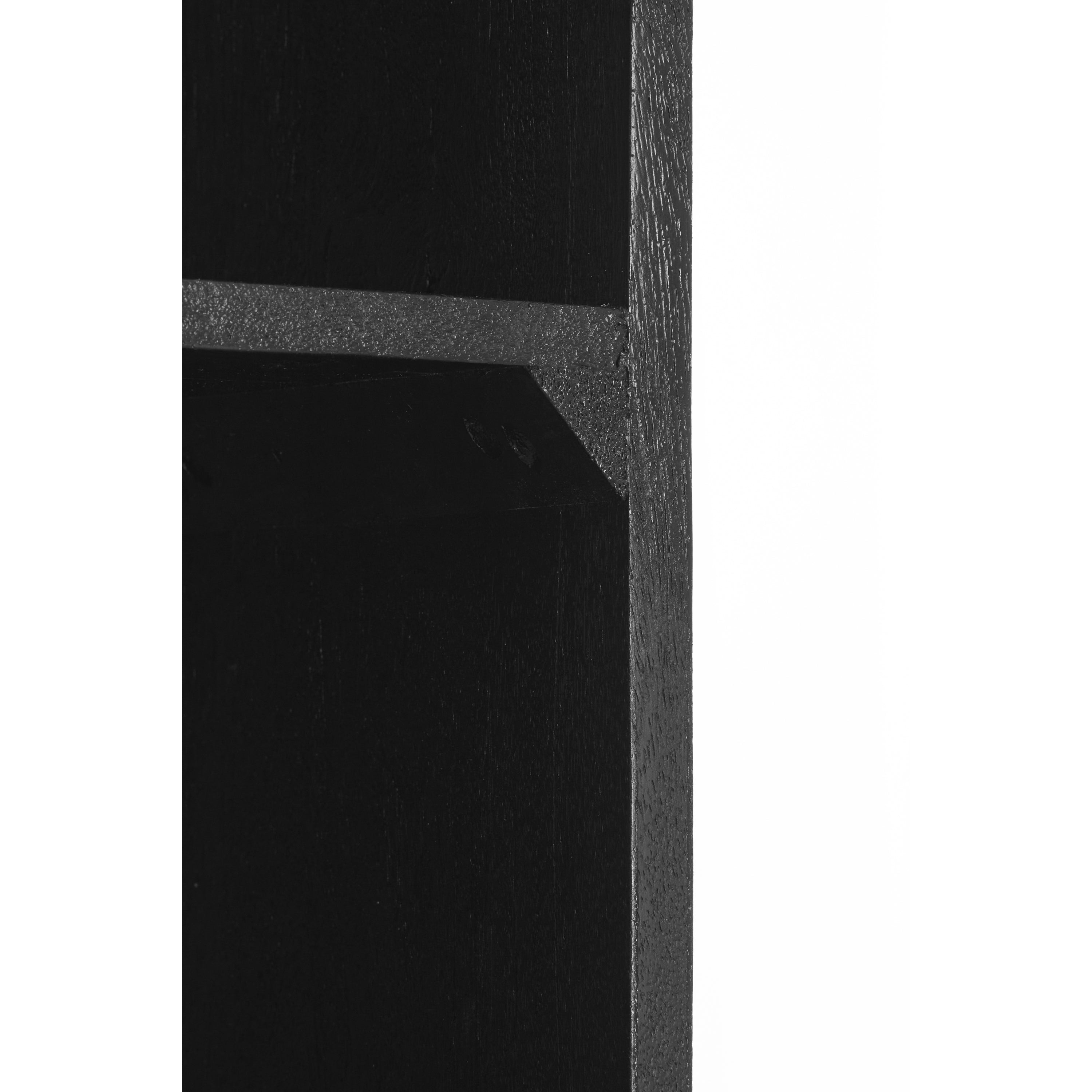 De kast is afgewerkt in een matte zwarte kleur, wat zorgt voor een eigentijdse en verfijnde uitstraling. De matzwarte afwerking maakt de kast veelzijdig en eenvoudig te combineren met verschillende interieurstijlen en kleurenschema’s. Het moderne design voegt een chique accent toe aan elke kamer, van minimalistisch tot industrieel en klassiek.