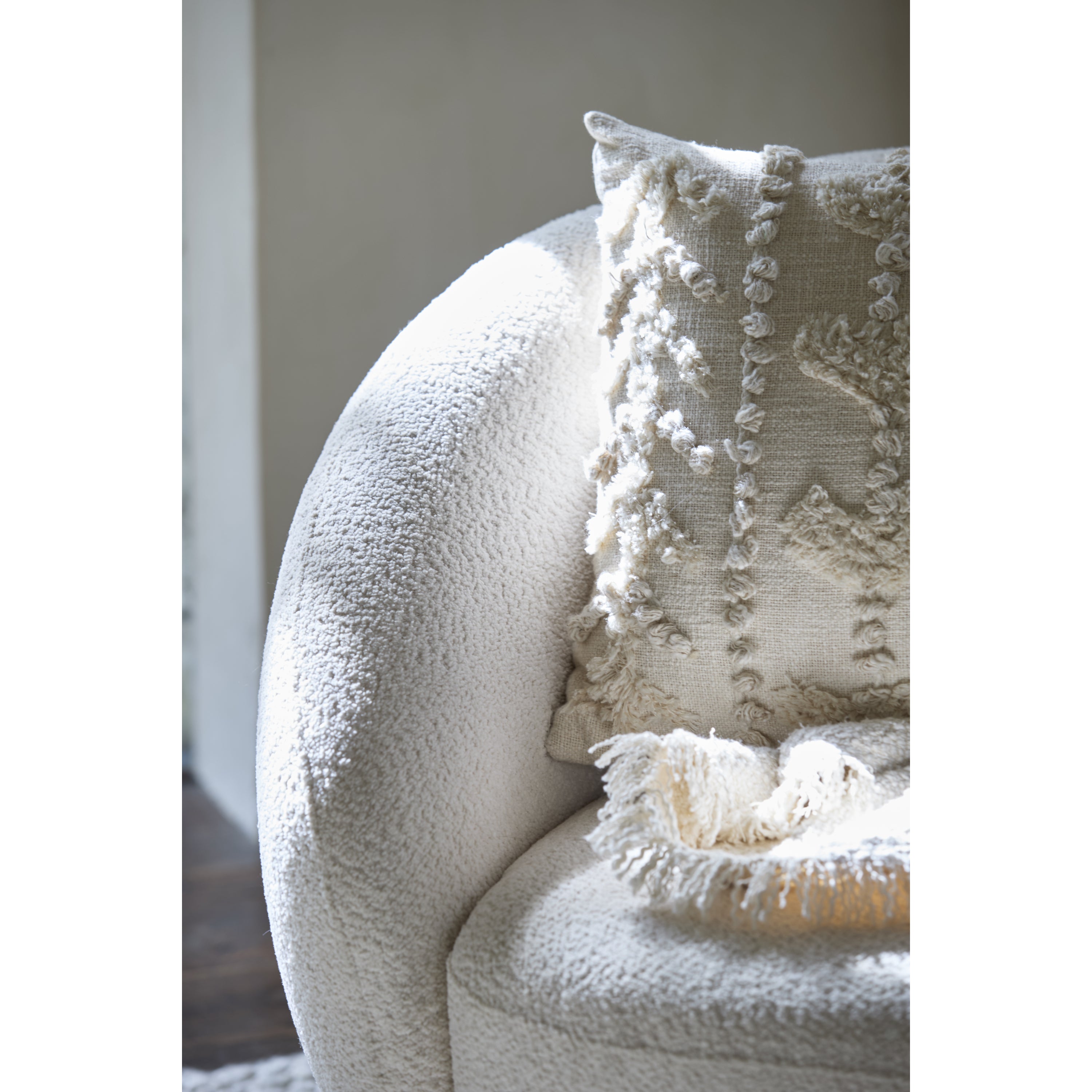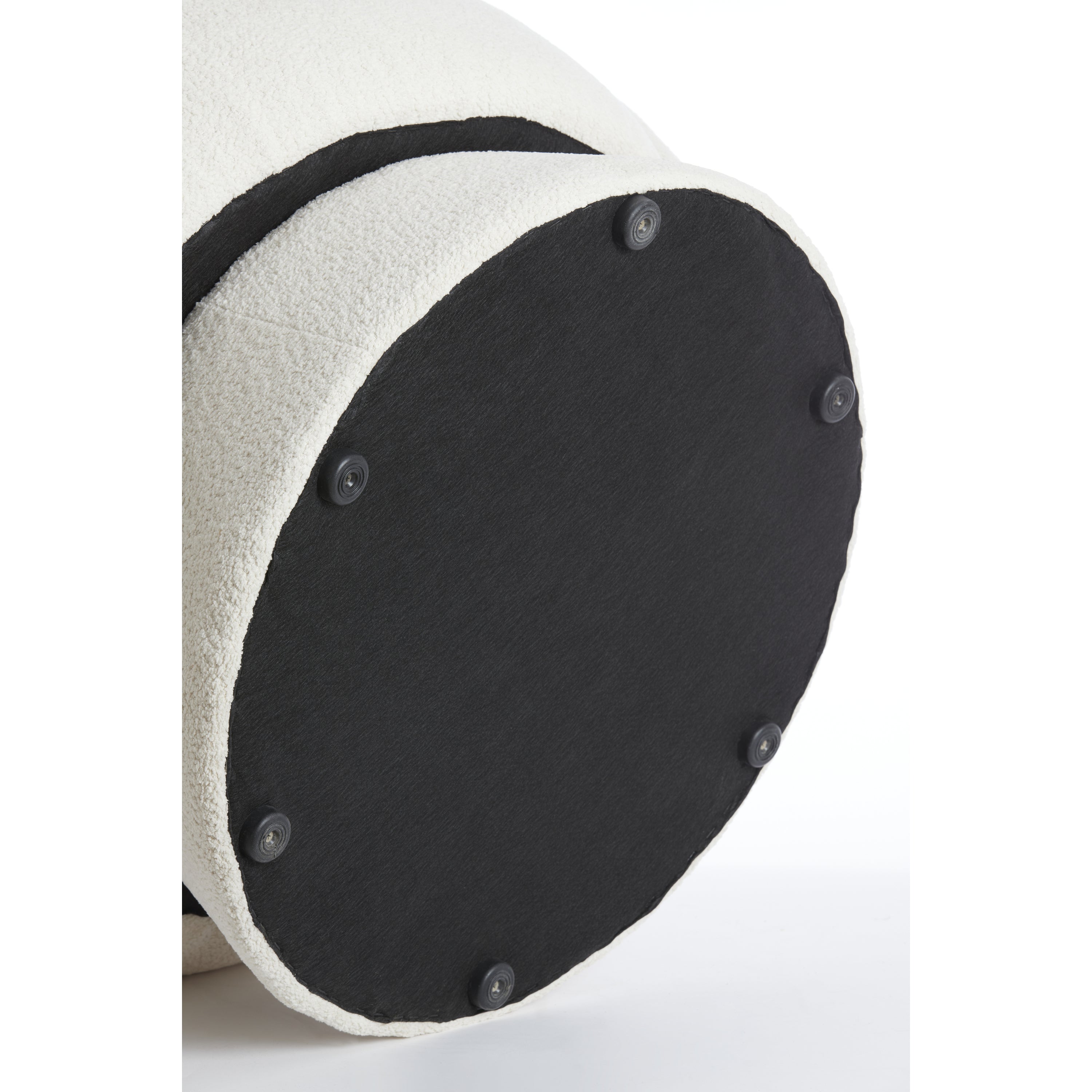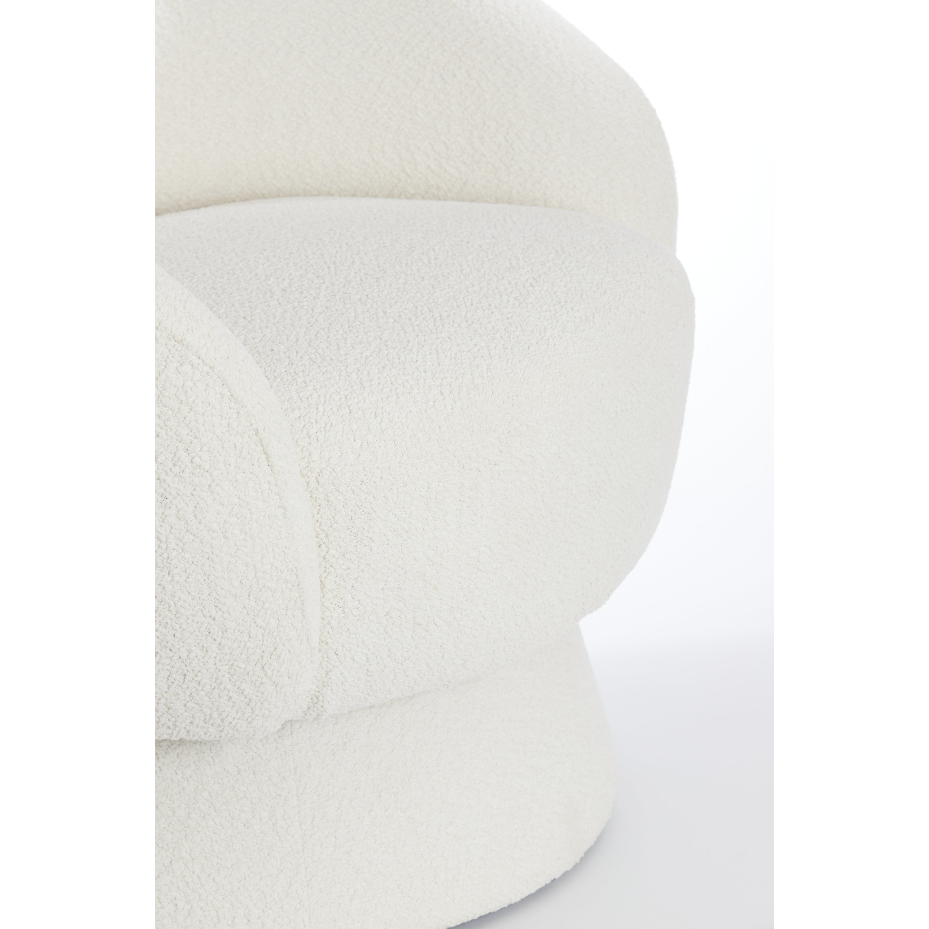 Het crèmekleurige bouclé materiaal van de stoel voegt een luxe en stijlvolle uitstraling toe aan elke ruimte. Het zachte en pluizige oppervlak zorgt voor een aangename zitervaring en maakt de stoel een opvallend element in je interieur.