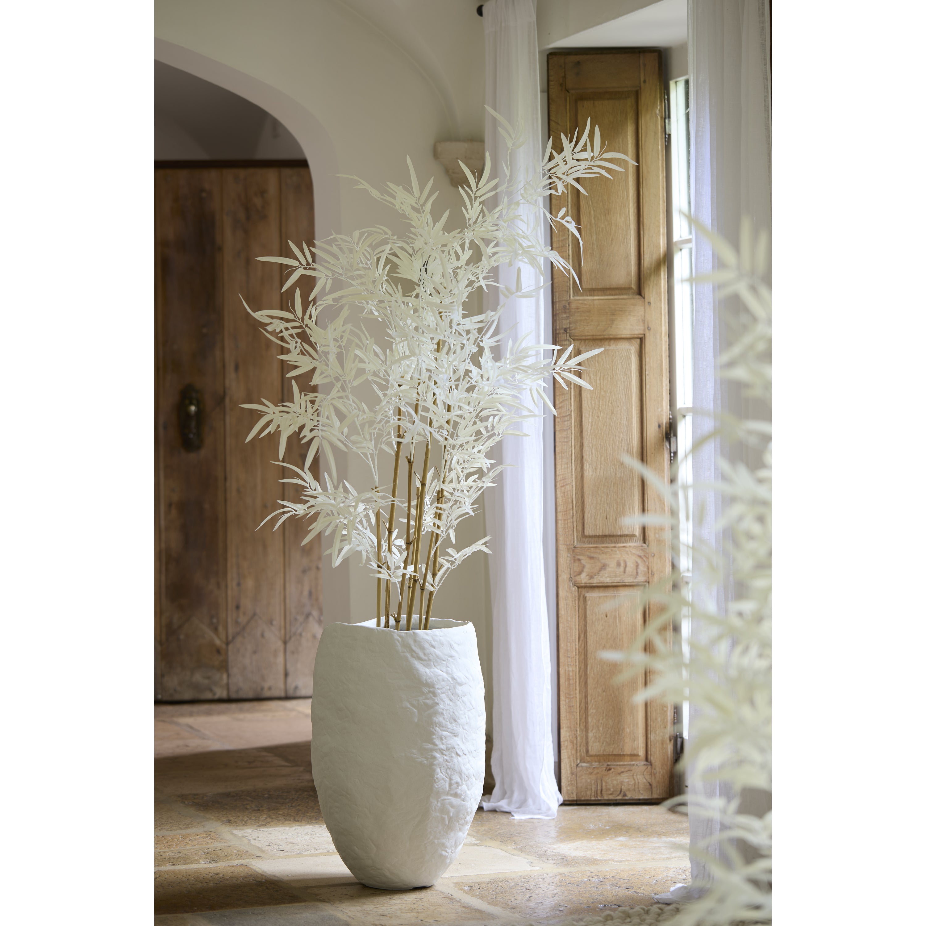 Met een diameter van 39 cm en een hoogte van 58 cm is de TINGRI vaas ideaal voor het presenteren van grotere bloemstukken of takken. De royale opening en het ruime volume bieden voldoende ruimte om een indrukwekkend bloemstuk te creëren, terwijl de vaas zelf altijd een elegant statement maakt in de ruimte. Zelfs zonder bloemen blijft de vaas een opvallend decoratief object.