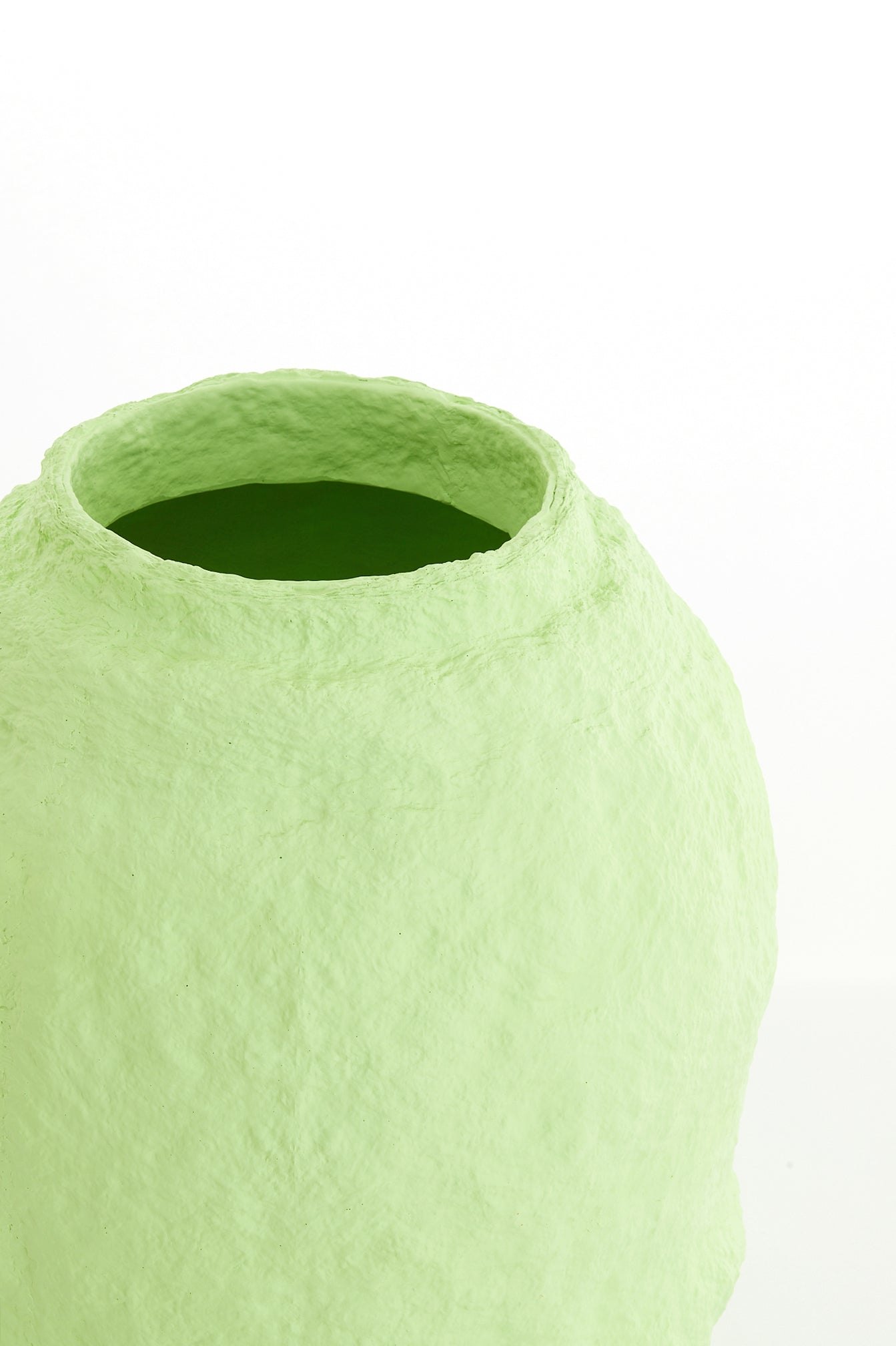 De matte mintgroene afwerking van de LEANO vaas brengt een levendige en serene sfeer in huis. Deze kleur werkt perfect in interieurs met lichte of natuurlijke tinten, maar vormt ook een speels contrast in een modern of minimalistisch decor.