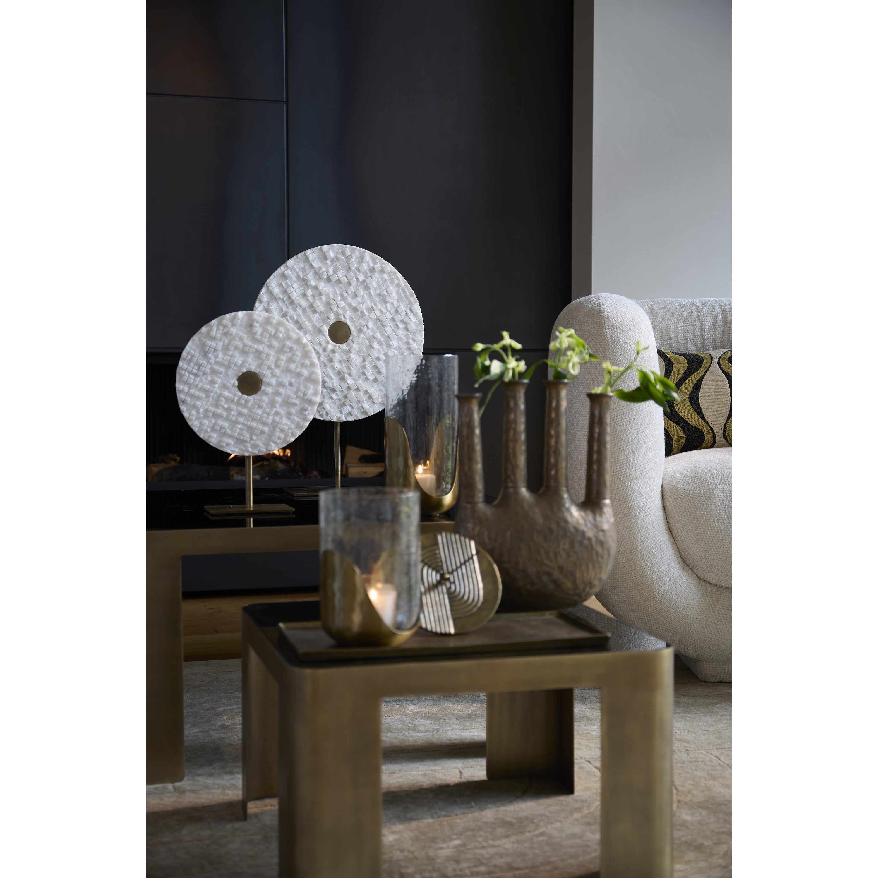 Dankzij de combinatie van marmer en antiek brons past het YVO ornament naadloos in verschillende interieurstijlen. Of je nu een traditioneel, modern of eclectisch interieur hebt, dit ornament biedt een veelzijdige en verfijnde decoratieve oplossing die gemakkelijk integreert met bestaande decoraties.
