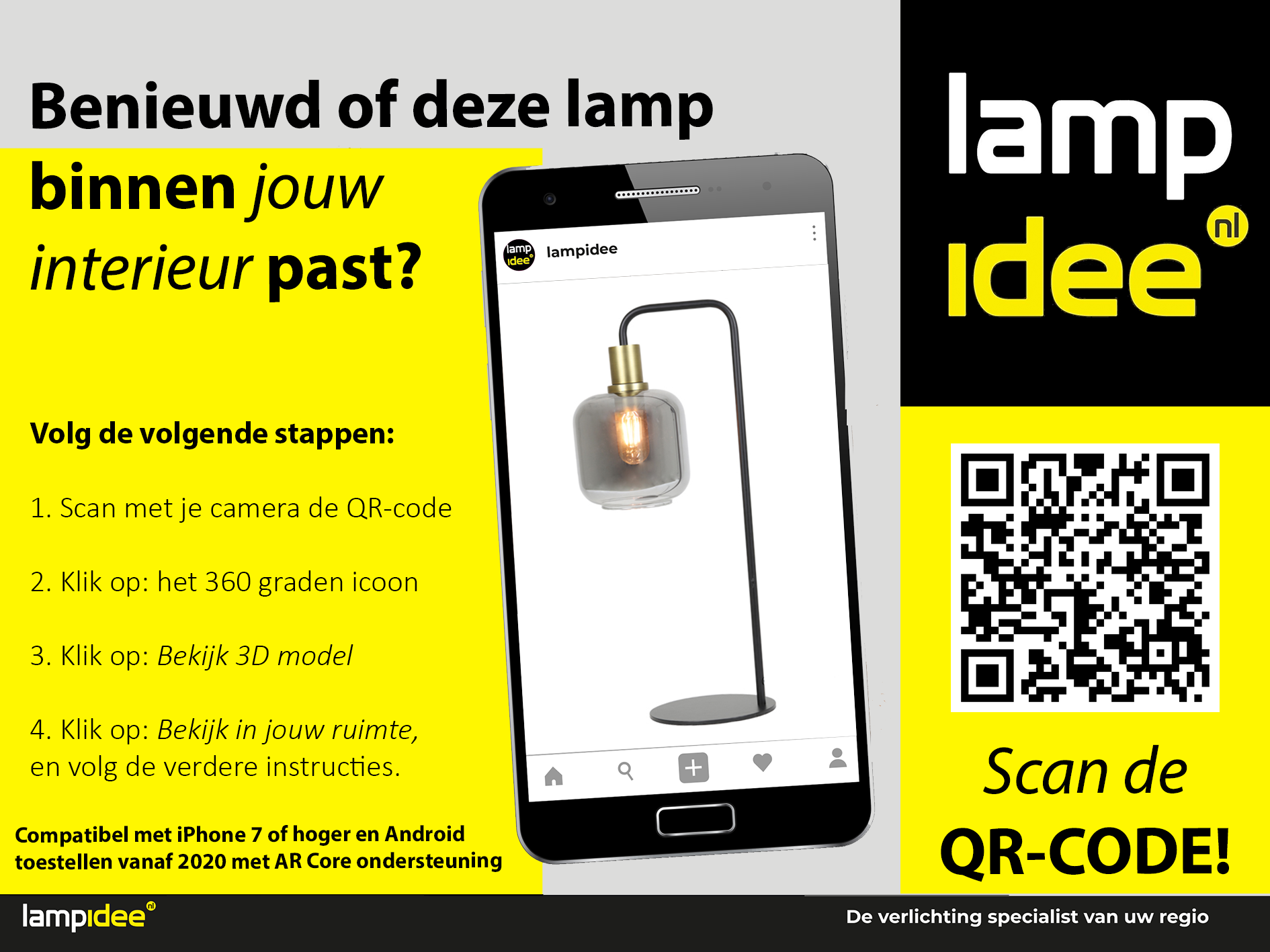 Richt de camera van je mobiele telefoon of tablet op de QR-code. Klik de link aan die in beeld verschijnt en het product wordt virtueel in je eigen huis geplaatst. Zo weet je zeker of het bij je past.