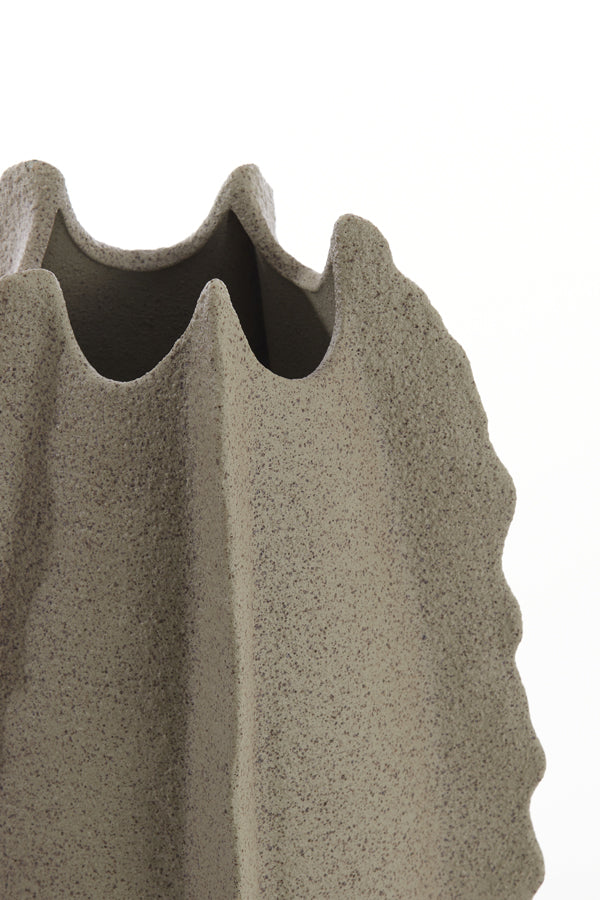 De rustgevende grijsgroene kleur van deze vaas weerspiegelt de schoonheid van de natuur. Het subtiele kleurenpalet past moeiteloos in verschillende interieurstijlen en voegt een kalme en ontspannen sfeer toe aan elke kamer.