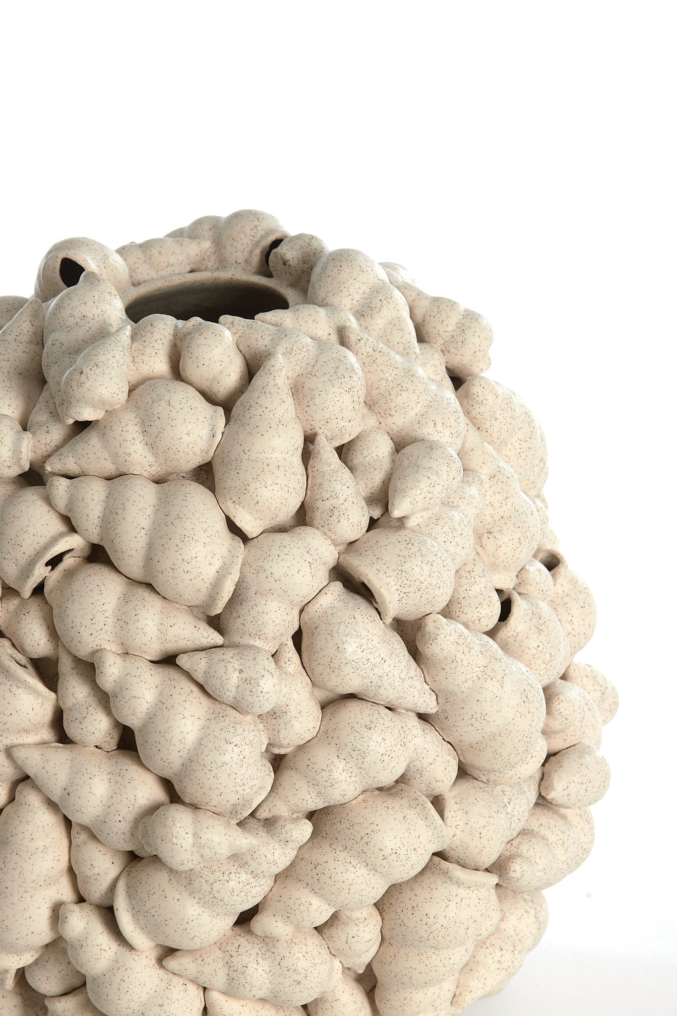 Vaas deco Ø28x30 cm SHELL keramiek structuur crème is gemaakt en ontwerpen door het Nederlandse merk Light & Living.
