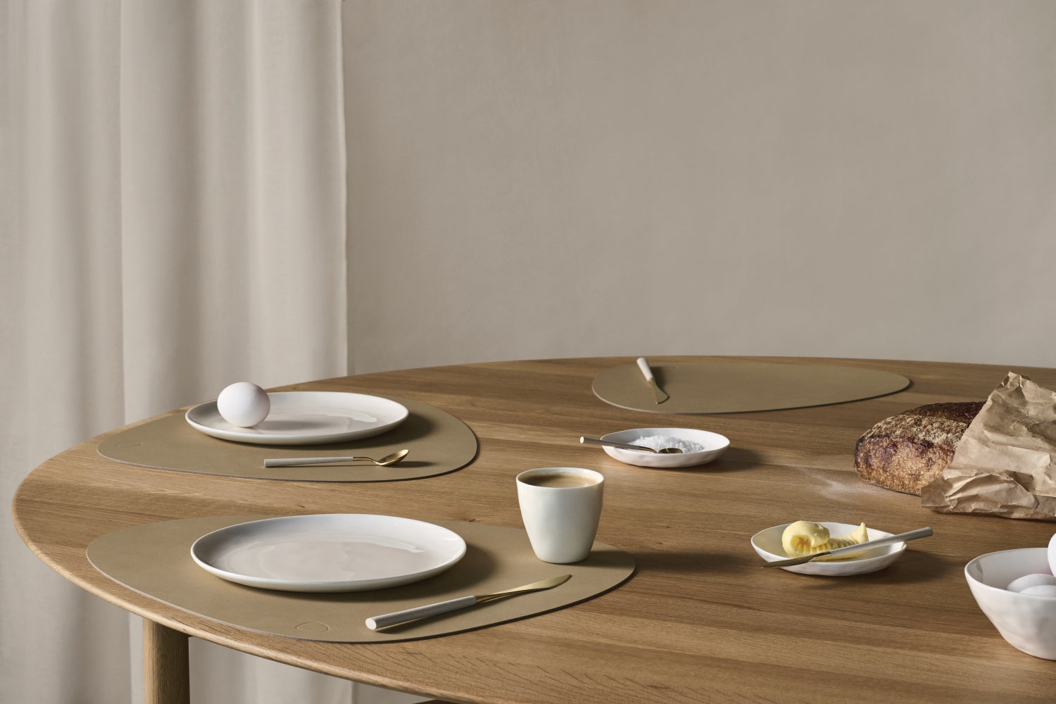 LIND DNA Placemats Nupo - Leer - Khaki - Curved - 44 x 37 cm - 2 Stuks