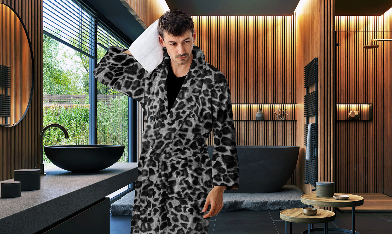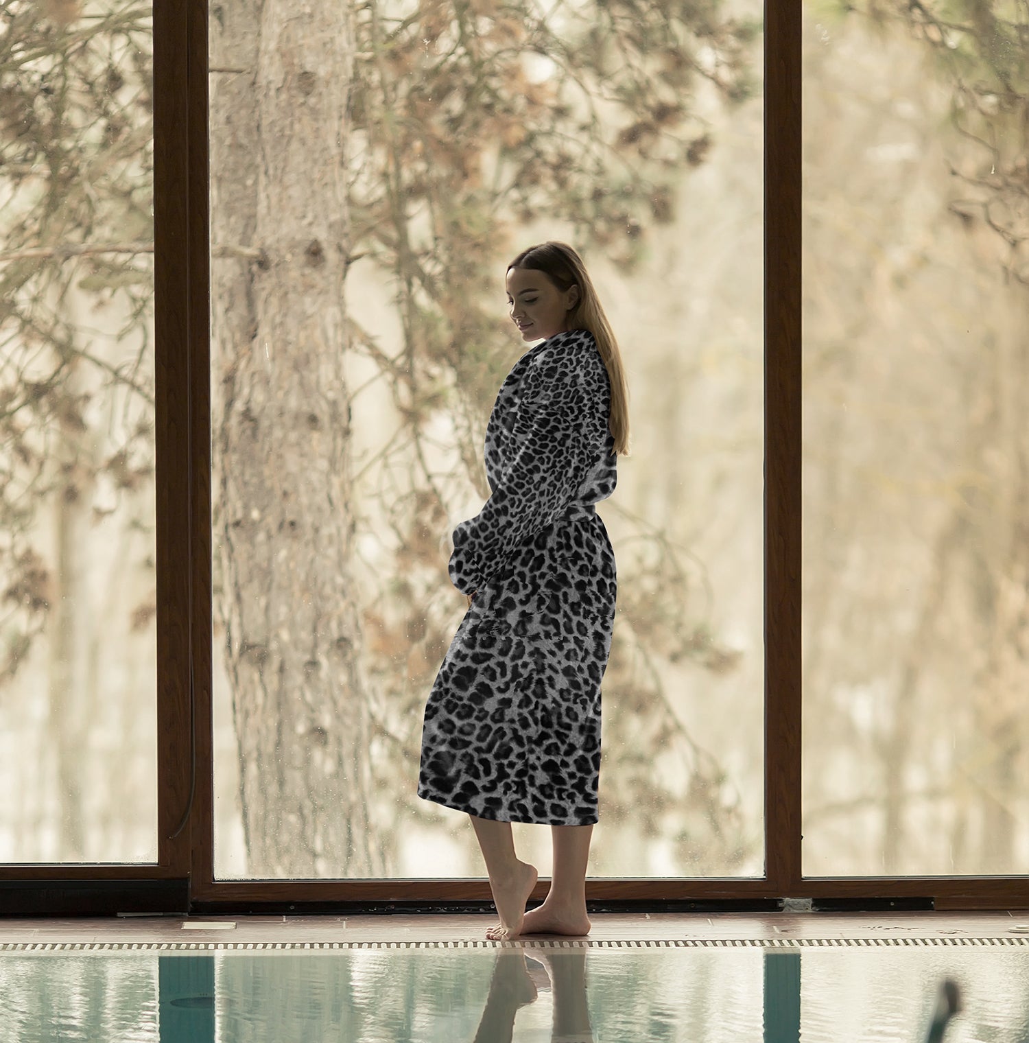 - Unisex badjas met een prachtige luipaard print die heerlijk is om aan te trekken in huis of voor een ontspannen dag in de sauna