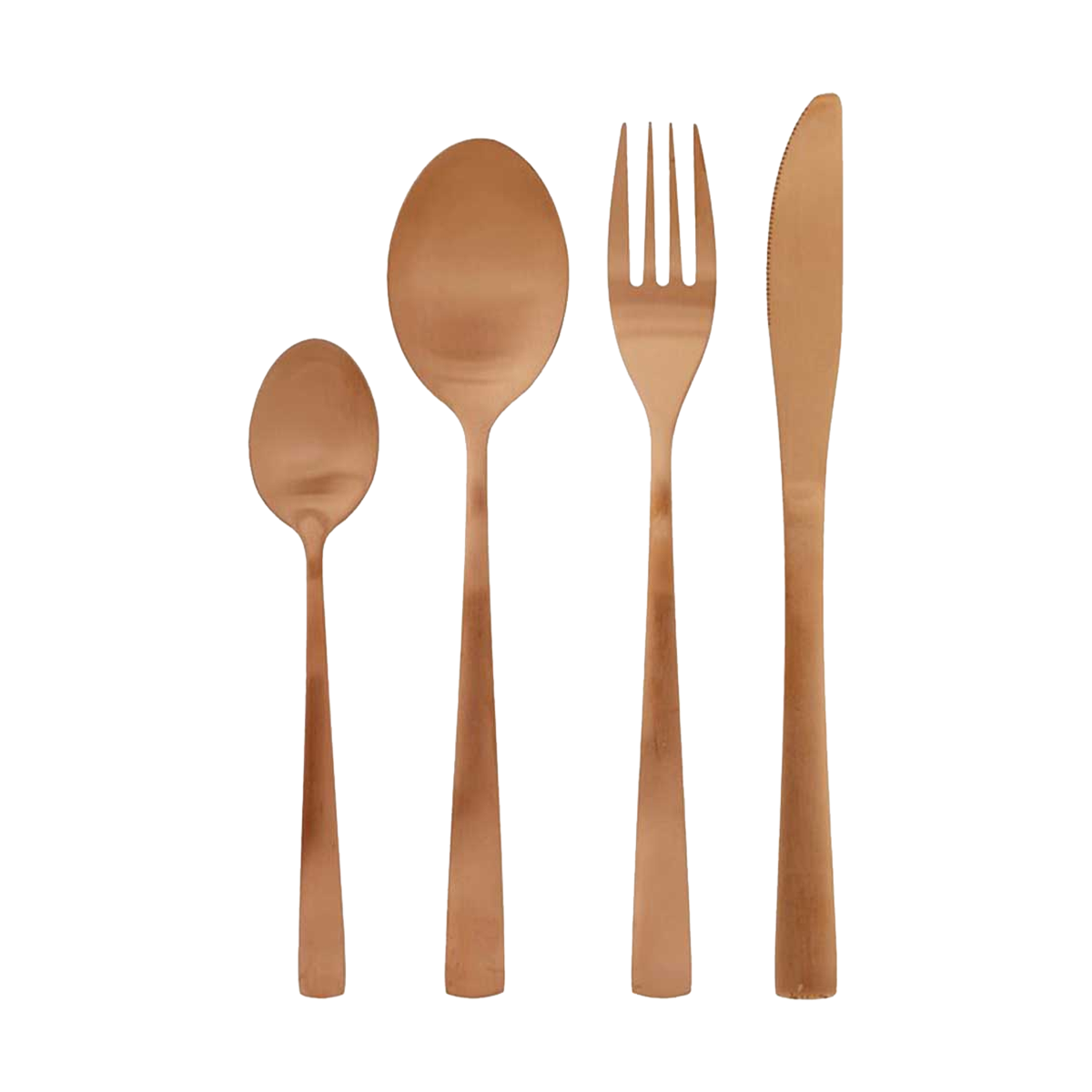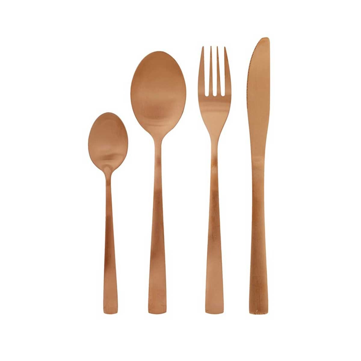 De Ace bestekset van Lisomme bevat een mes, vork, lepel en theelepel, gemaakt van roestvrijstaal. De bestekset kan in de vaatwasser, maar we raden aan voor het behoudt van het bestek ze met de hand af te wassen. Het 16-delige metalen bestek met matte afwerking is ook in het zwart verkrijgbaar.