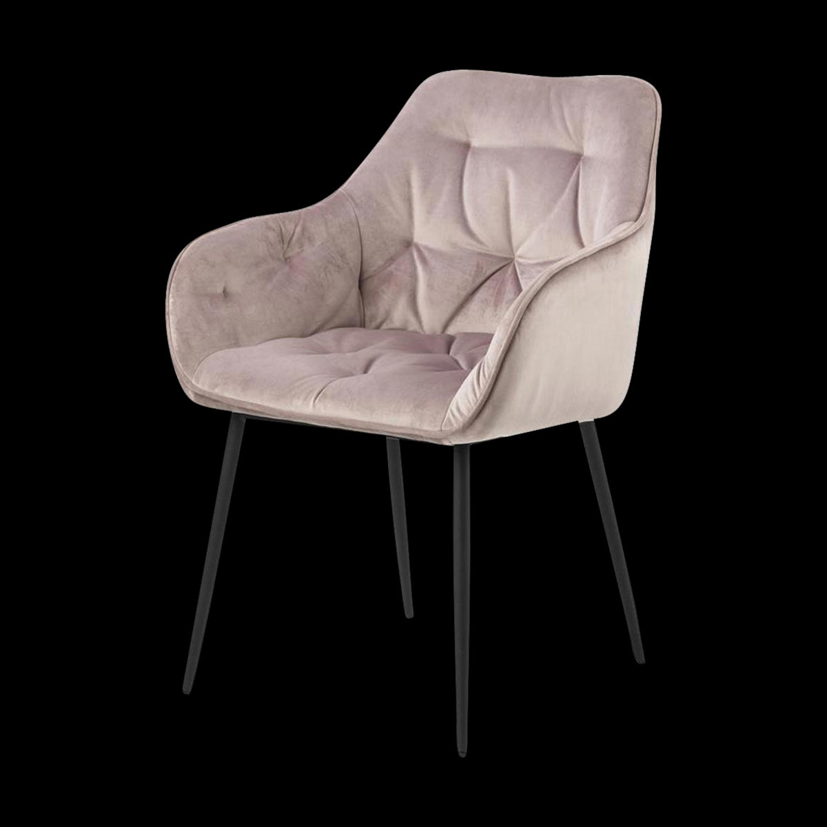De zitting van de eetkamerstoel is volledig gevoerd met zacht foam en afgewerkt met een zachte velvet stof. Het zitgedeelde is extra comfortabel gemaakt en de armleuningen zitten op perfecte hoogte. Het onderstel is gemaakt van sterk metaal, wat de stoel ook een industriële touch geeft. Maar door de gecapitonneerde zitting weer erg retro is.
