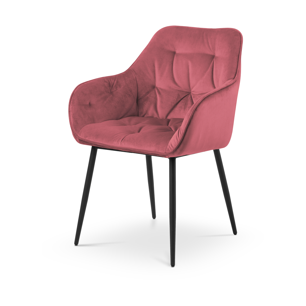 De zitting van de eetkamerstoel is volledig gevoerd met zacht foam en afgewerkt met een zachte velvet stof. Het zitgedeelde is extra comfortabel gemaakt en de armleuningen zitten op perfecte hoogte. Het onderstel is gemaakt van sterk metaal, wat de stoel ook een industriële touch geeft. Maar door de gecapitonneerde zitting weer erg retro is.