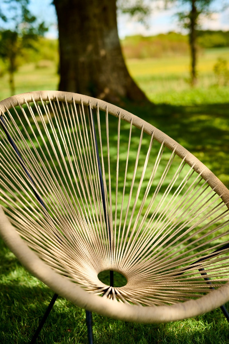 Zeg nou zelf, wat past er beter in je tuin dan zo'n kuipstoel in een luchtig ontwerp van draad.