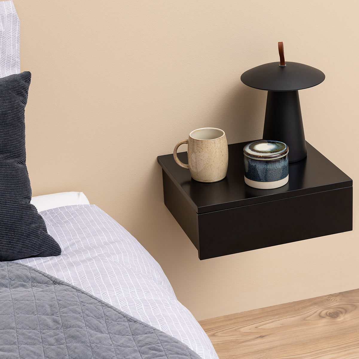 - Dit zwevende nachtkastje bespaart ruimte op de vloer
