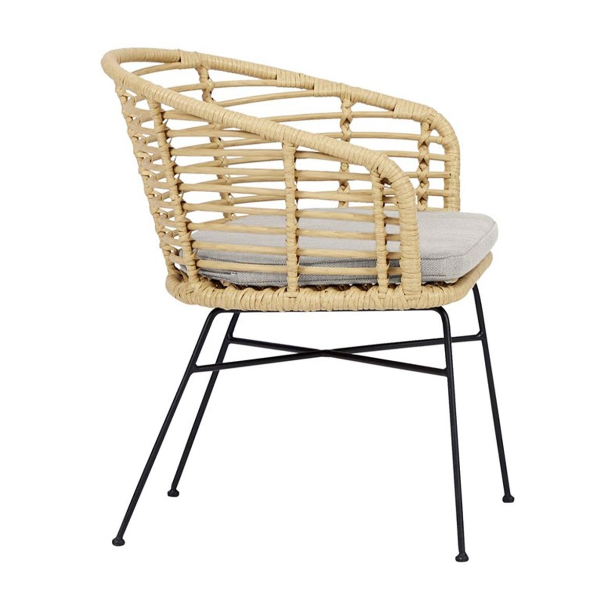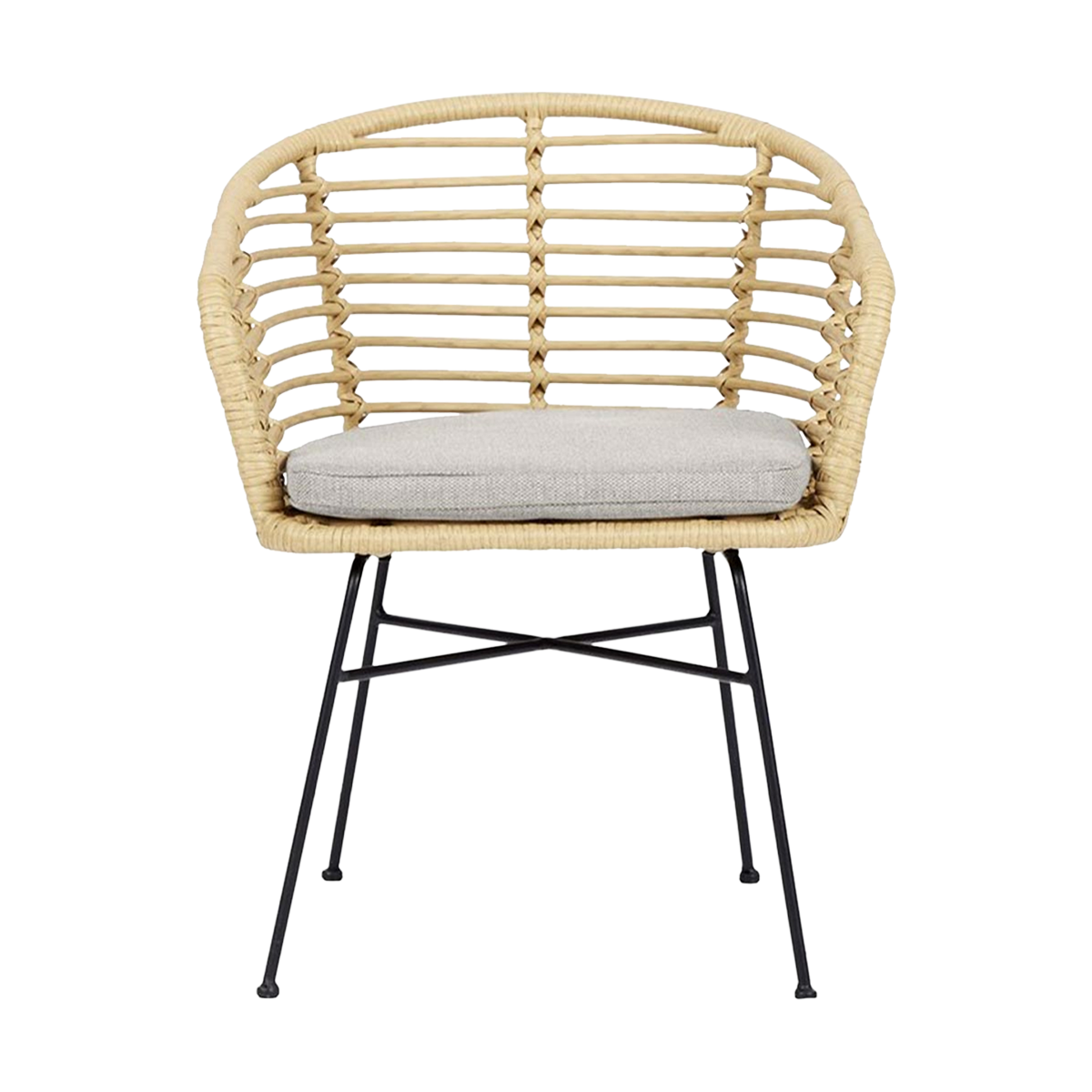 De rotan design zitting vormt een mooi contrast met het metalen onderstel, dat de stoel dankzij het metalen kruis een moderne uitstraling geeft. Je kunt gegarandeerd urenlang heerlijk zitten door het comfortabele zitkussen. Het leuke aan de Dax tuinstoel is dat deze is gemaakt van waterbestendig materiaal. Hierdoor is de stoel uitermate geschikt om buiten als tuinstoel te gebruiken. Behalve op het terras is de stoel tevens leuk om bijvoorbeeld te gebruiken als eetkamerstoel, sfeermaker in de kinderkamer of onder een leeslampje in de woonkamer.