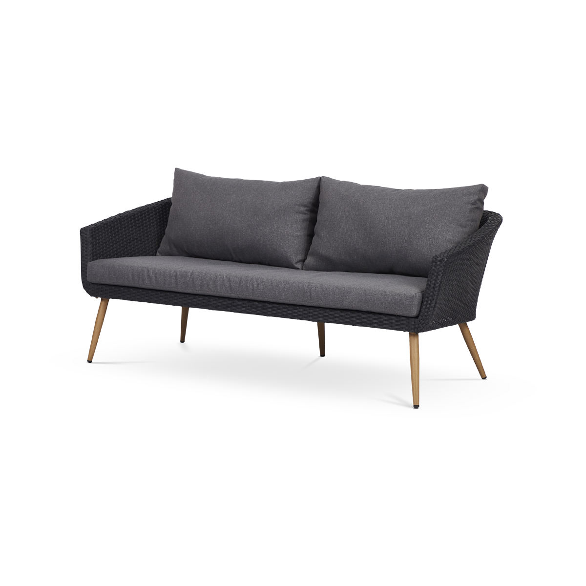 Lisomme Fien rotan tuinbank zwart - Met zitkussens