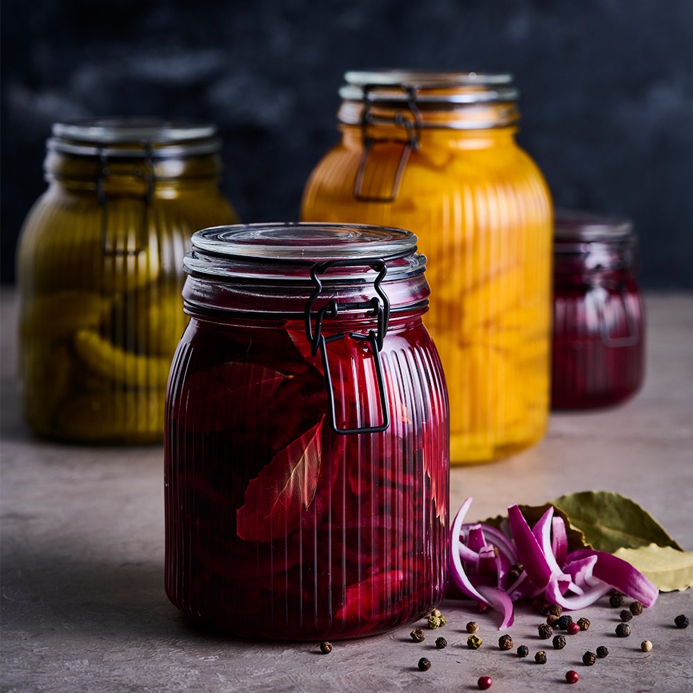 De Fieve pot is een voorraadpot gemaakt van glas. De pot heeft een geribbelde buitenzijde en deksel met zwarte metalen beugelsluiting en siliconen ring. Deze pot heeft een inhoud van 0,5 L. Door de luchtdichte afsluiting blijft voedsel als ingemaakte groente, jam en koekjes langer behouden. De Fieve weckpot is niet alleen handig maar is ook nog eens leuk om te zien. Het geribbelde glas zorgt ervoor dat de voorraadpot net iets meer opvalt dan een standaard pot, en maakt het een item dat je tentoon kan stellen in de keuken.
