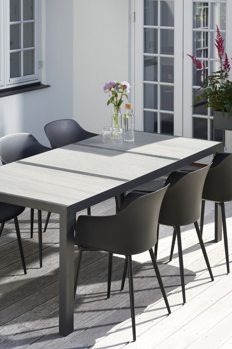 Deze aluminium en keramieken tuintafel Ivar is een stijlvolle toevoeging voor op het terras.
