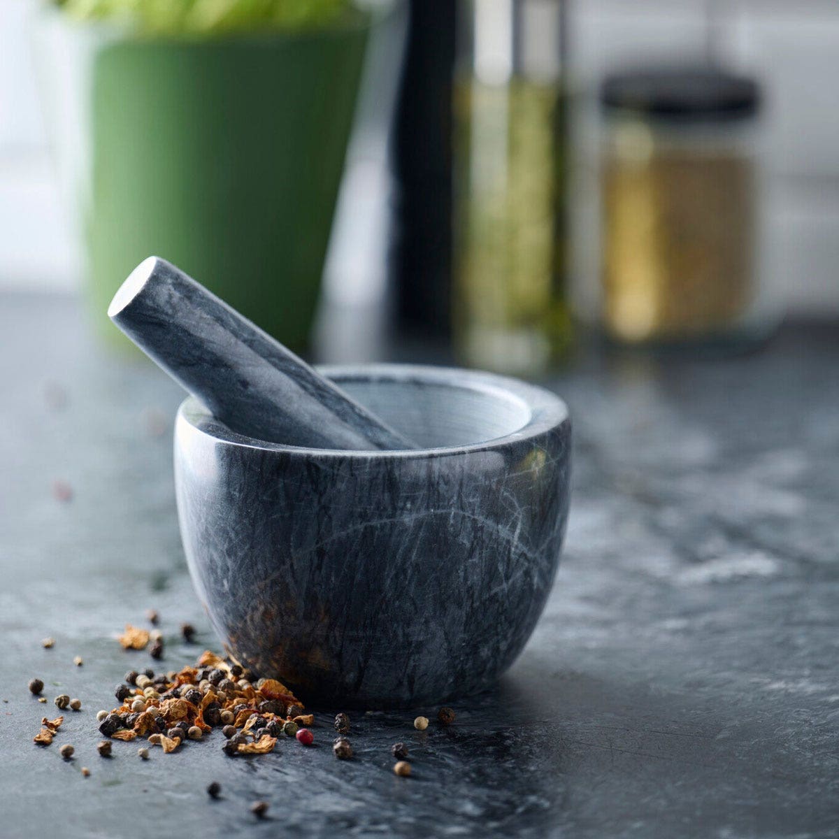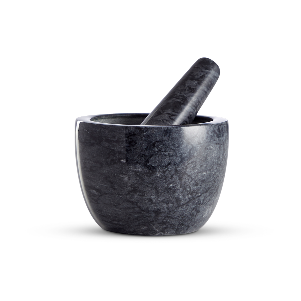 De Lev marmeren vijzel en stamper van Lisomme is een musthave voor iedere hobbykok.