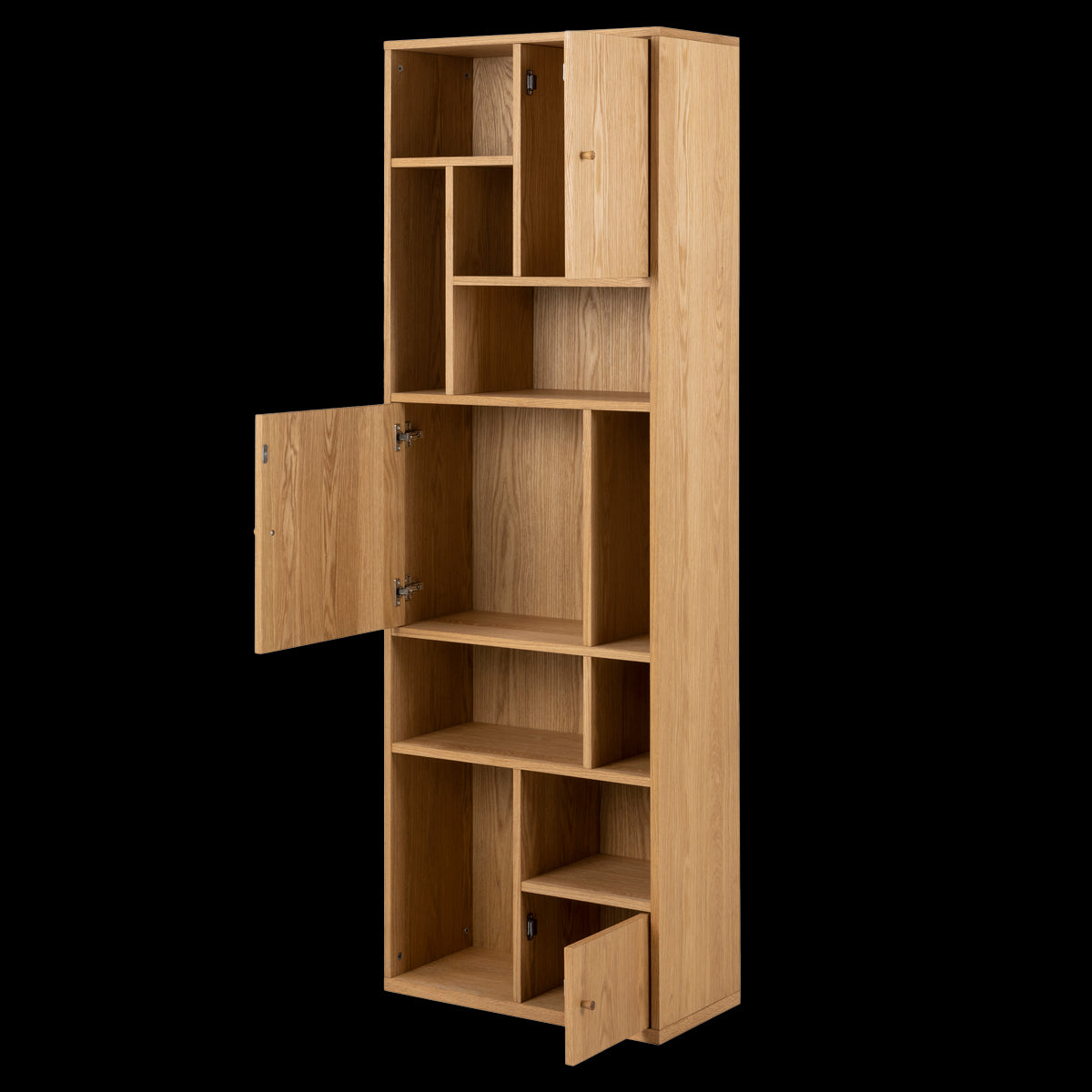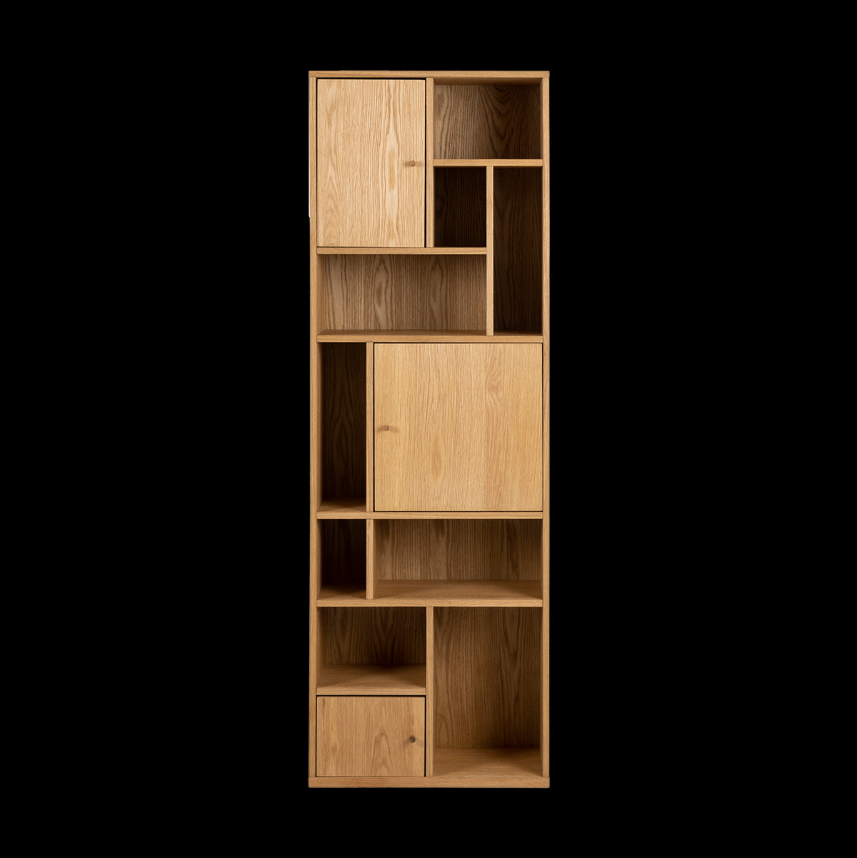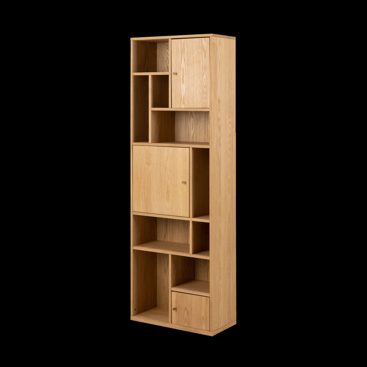 De Maarten boekenkast is gemaakt van hout en is afgewerkt met een laag eikenfineer. Met zijn formaat van 60,5 x 180 cm is deze hoge houten kast perfect voor wie een elegante en ruimtebesparende oplossing zoekt. Met zijn smalle design en natuurlijke houten afwerking brengt de boekenkast warmte en functionaliteit naar elke ruimte. Of je hem nu in de woonkamer, hal of slaapkamer plaatst, deze vakkenkast combineert moeiteloos praktische opbergruimte met een tijdloze uitstraling. De kast is ontworpen met 9 open vakken en 3 dichte vakken, zodat je zowel plek hebt om spullen uit het zicht op te bergen als ruimte om leuke accessoires te showen.
