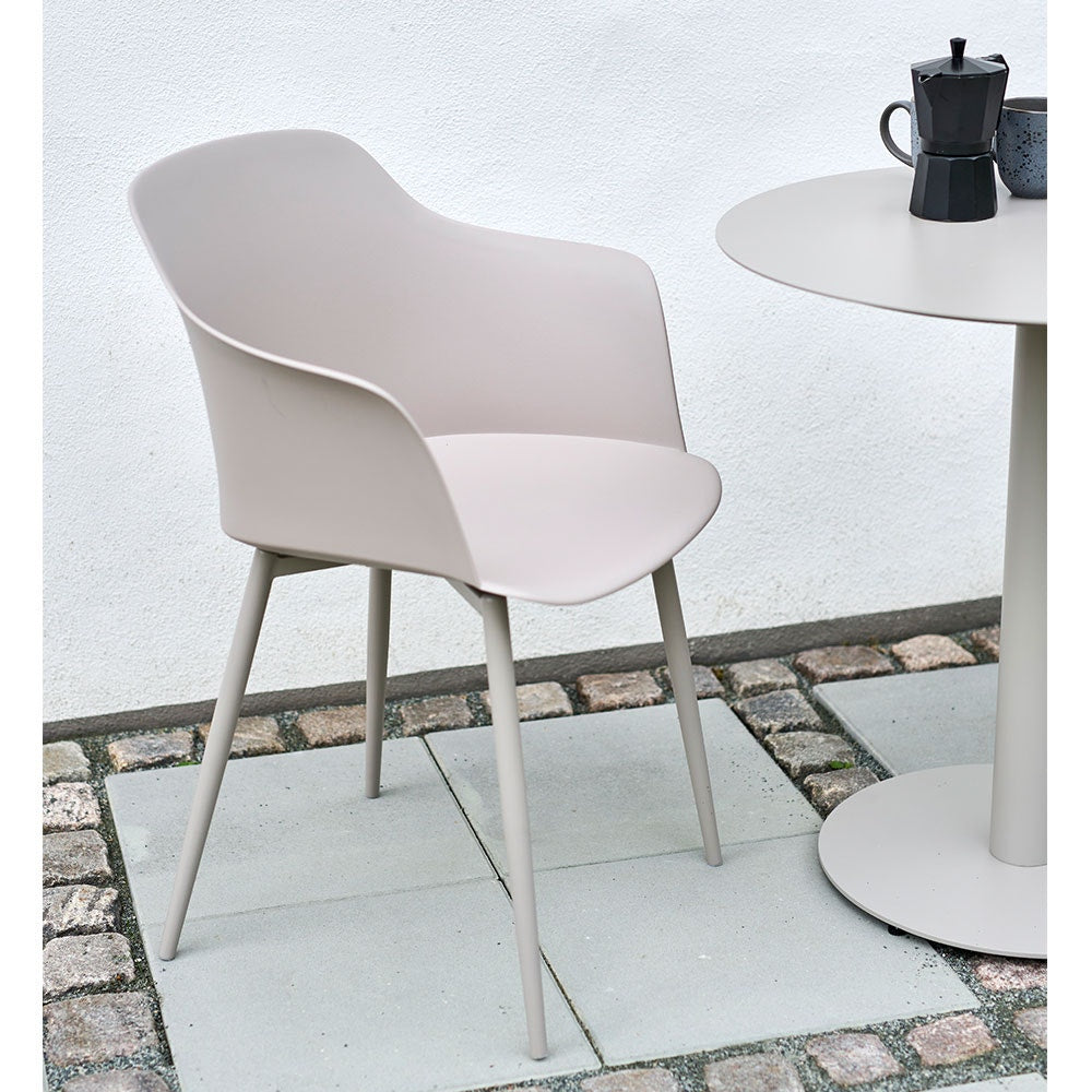 Deze compacte tuintafel is perfect voor kleine ruimtes en geschikt voor 2 tot 4 personen. De eettafel is volledig gemaakt van metaal en bestendig tegen weersomstandigheden. Het metalen blad heeft een doorsnede van 70 cm en gemakkelijk schoon te houden. Het onderstel heeft een ronde voet, wat rondom voldoende ruimte biedt onder de tafel. Om beschadiging op de tegels of onder de poot te voorkomen is hij ontworpen met 6 hoge beschermdoppen. Staat deze leuke bistro tafel binnenkort bij jou in de tuin?