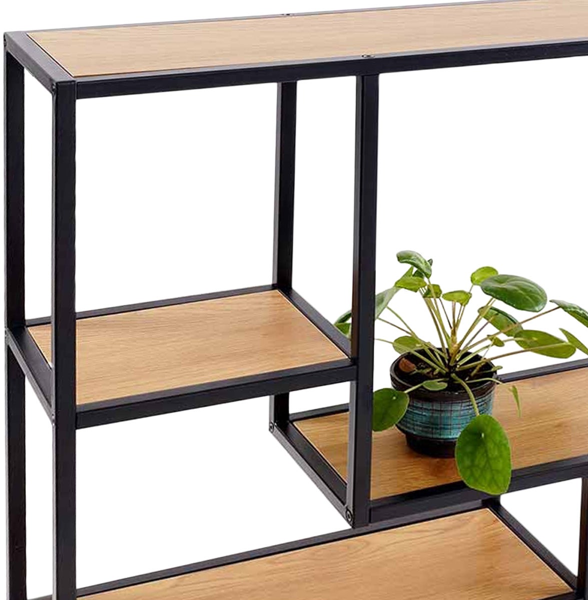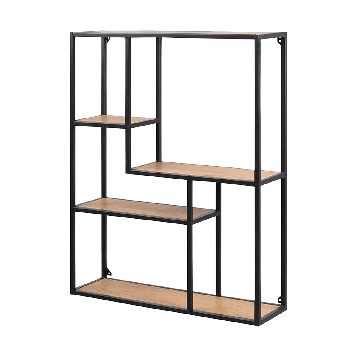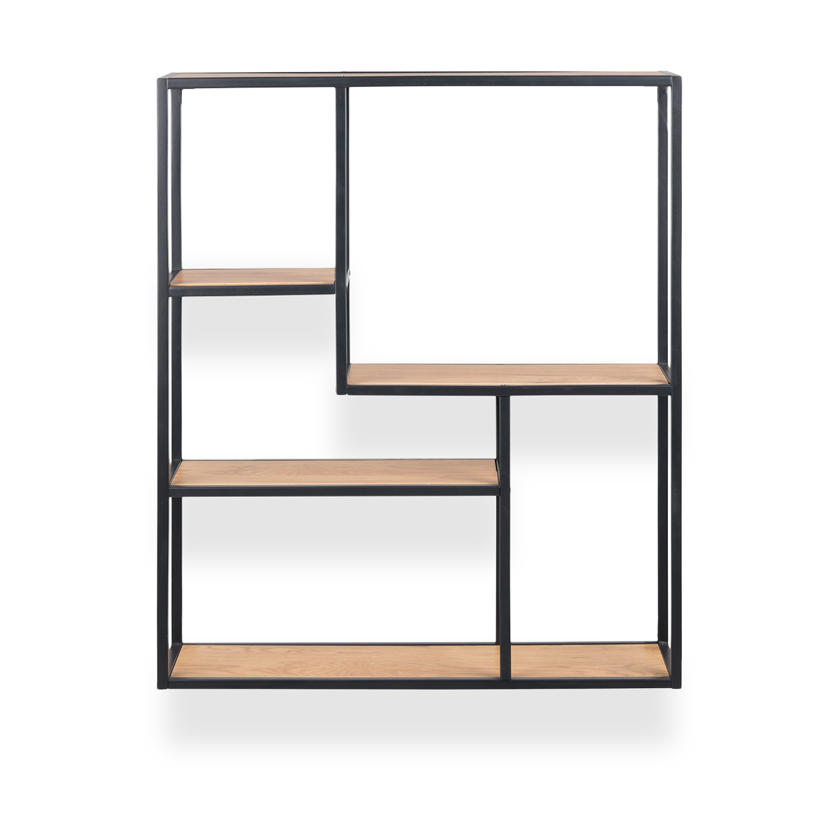 De Vic wandkast heeft meerdere vakken, die op een speelse manier asymmetrisch zijn ingedeeld. Deze prachtige wandkast past in ieder interieur. De wandkast is gemaakt van eikenhout met een laagje fineer en heeft een stevig metalen frame. Doordat het zwart metalen frame afgewerkt is met een poedercoating krijgt de kast een industriële sfeer. Dankzij de drie planken is er genoeg ruimte om al jouw mooie spulletjes te tonen. Gebruik hem op verschillende plekken in je huis, bijvoorbeeld in de woonkamer met mooie accessoires of in de keuken met kookboeken en verse kruiden. Kortom, wanneer je opzoek bent naar een industriële wandkast, dan is deze kast perfect voor jou!