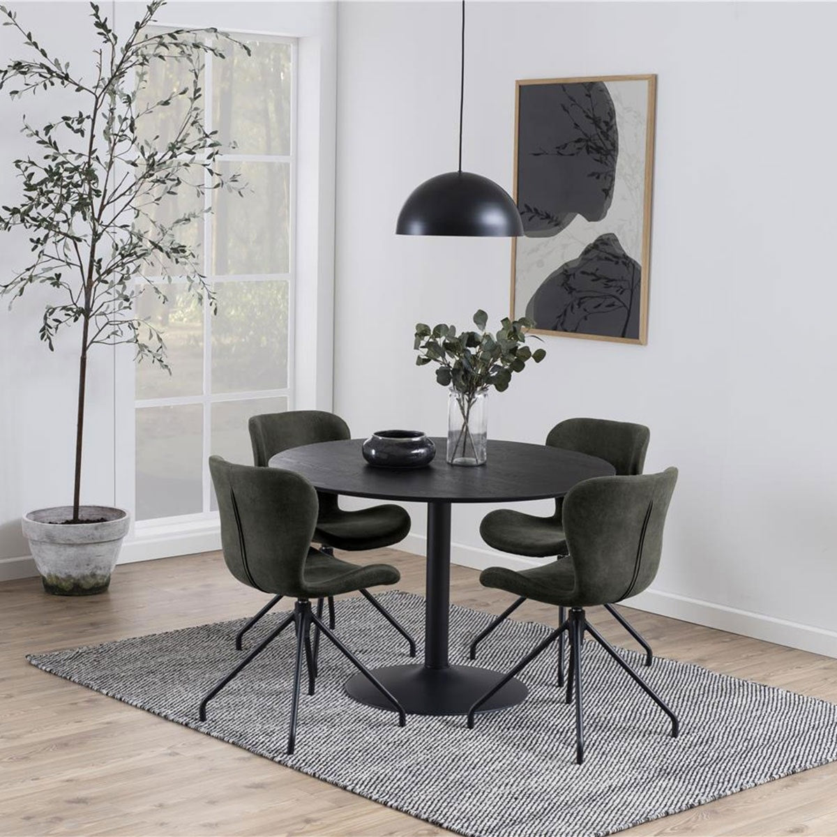 - Heeft een praktisch rond onderstel, waardoor er nooit een tafelpoot in de weg zit
