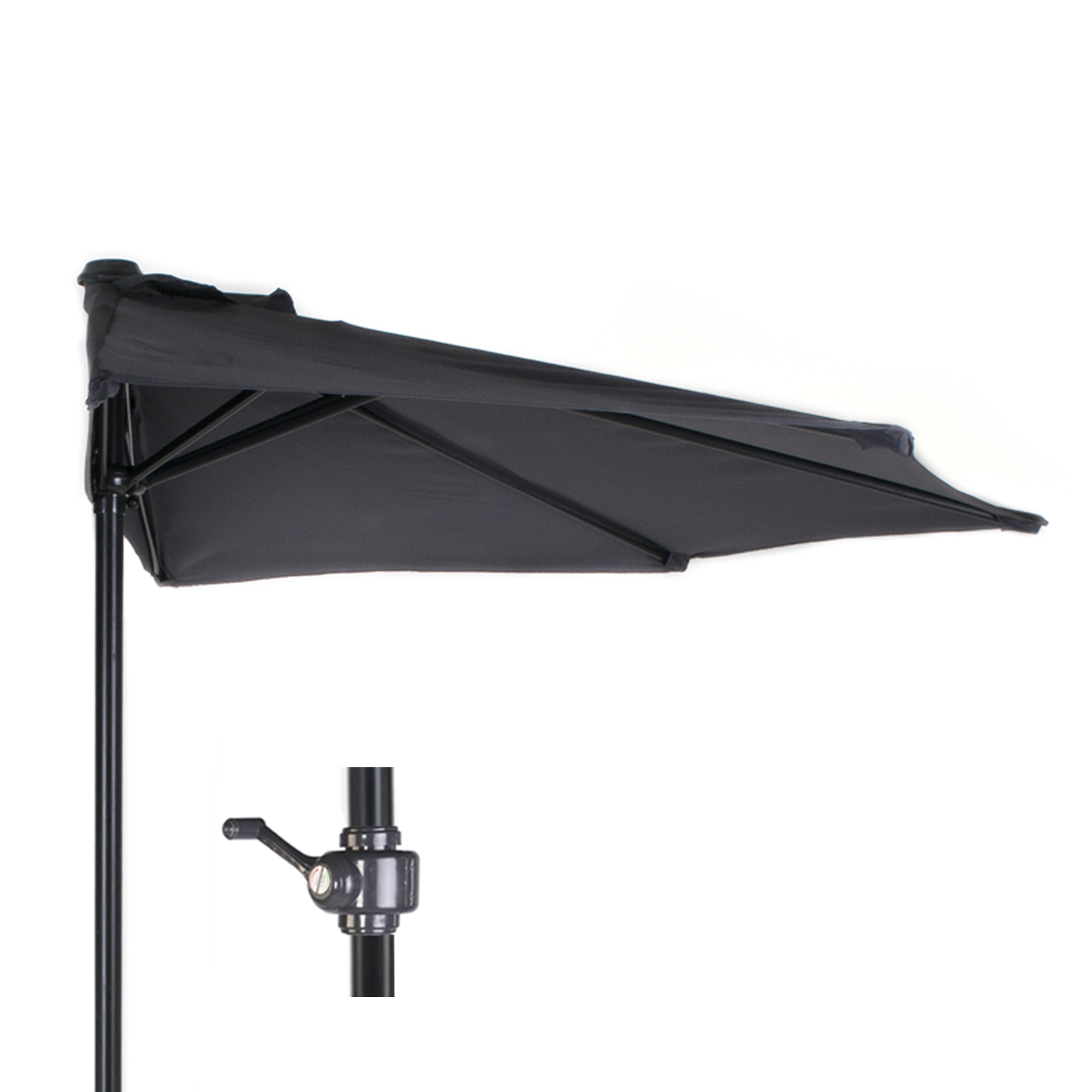 - De hoogte van de parasol is verstelbaar en kan dus worden aangepast aan je balkon of terras