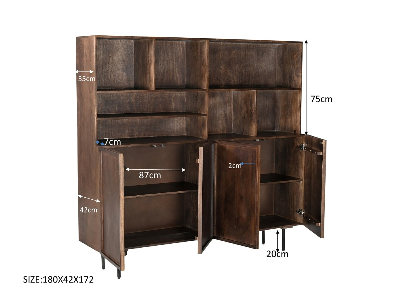 Livingfurn - Buffetkast Bruin Mangohout - 180x45x150cm - Elan