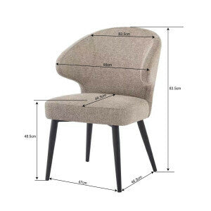 De hoogte van de zitting, gemeten vanaf de vloer. De ideale zithoogte bevindt zich tussen de 40 en 46 cm. Je zit het lekkerst met een ruimte van ongeveer 20 cm, tussen de stoelzitting en de onderkant van het tafelblad.
