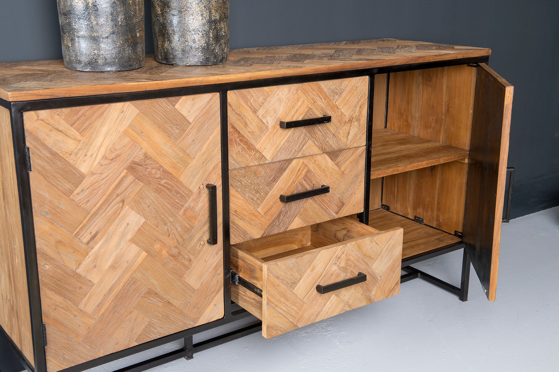 Over dit artikel: - Dressoir - Vorm: Rechthoekig - Kleur: Bruin - Materiaal: Mangohout en Gecoat Staal - 45x180x85